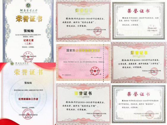青春因奋斗而闪耀,责任与成长交织并行。这是张灿灿始终如一的坚持,也是她青春篇章中最真实的注脚。作为学生干部,她相继担任班级心理委员、院新媒体部长,学生党支部书记等职务。在工作中,张灿灿展现出卓越的执行力与团队协作精神,始终以身作则,推动每项任务高质量落实。她善于沟通、主动作为,与师生建立良好互动,成为连接学院与学生之间的坚实桥梁,也使自身的组织协调、统筹规划等综合能力在实践中不断淬炼提升。因表现突出,她多次获评“优秀学生干部”、“三好学生”等荣誉称号。