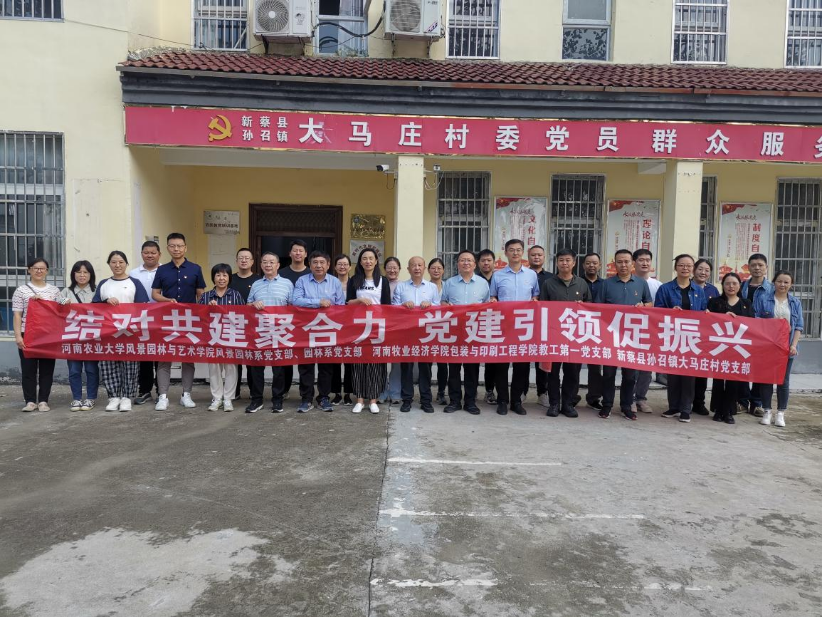 8月28日,一品探花 风景园林系教工党支部、园林系教工党支部与河南牧业经济学院包装与印刷工程学院教工第一党支部、驻马店市新蔡县孙召镇大马庄村党支部在大马庄村举行结对共建启动仪式。院党委书记侯永华、党委副书记赵九阳、副院长孔德政及教工支部党员代表,新蔡县人大常委会副主任、孙召镇党委书记田坤琦,大马庄村第一书记杨军,大马庄村党支部书记马明明,河南牧业经济学院包装与印刷工程学院院长张岩、党委副书记李帅堂、教工第一党支部书记卢芳芳及支部党员代表参会。启动仪式由杨军主持。