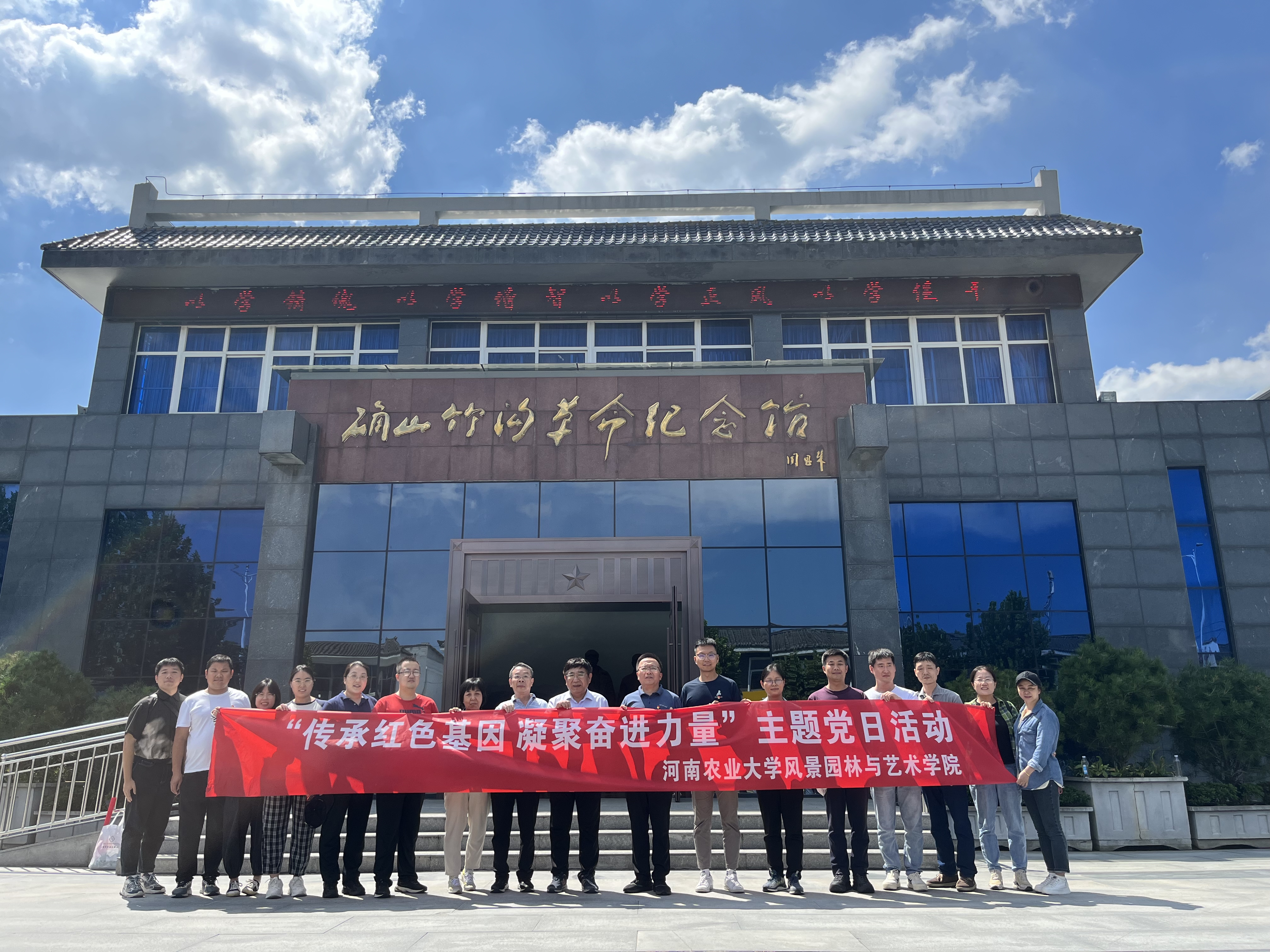 下午,在侯永华的带领下,到确山县竹沟革命纪念馆,开展“传承红色基因  凝聚奋进力量”主题党日活动,重温入党誓词,倾听廉洁典故,参观廉政文化长廊,接受廉洁文化洗礼,瞻仰先烈文物,聆听红色故事,坚定理想信念。通过此次主题党日活动,党员们深刻领会了坚定初心使命、传承红色文化、勇于艰苦奋斗的重要意义。全体党员表示,将把习近平新时代中国特色社会主义思想转化为坚定理想、锤炼党性、指导实践和推动工作的强大力量,立足岗位,担当奉献,为推动学院高质量发展贡献智慧和力量!