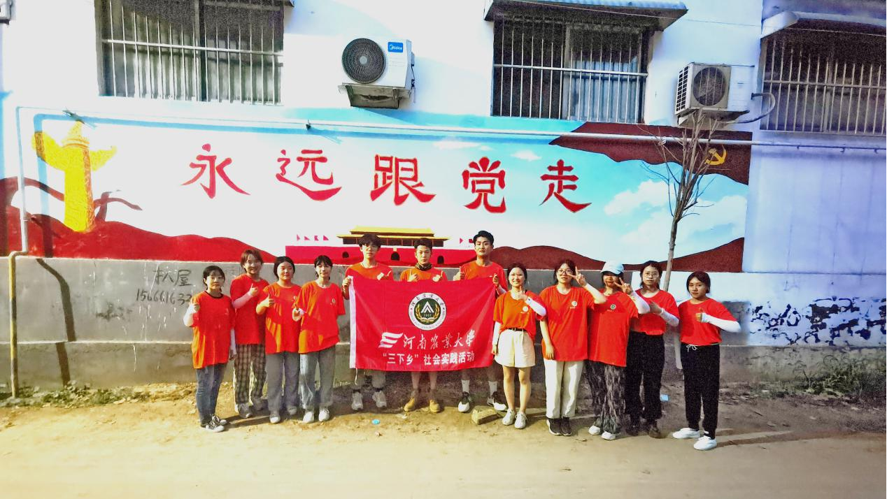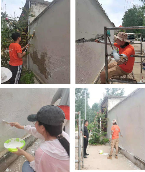 7月12日,团队抵达目的地后首先对村内地理位置、墙绘风格进行考察,结合当地浓郁的黄河文化特色以及村民对美好生活的向往,团队决定以水墨画和党政宣传为主题进行绘画。活动中,团队秉持用画笔描绘美丽乡村、为乡村注入文化血液的理念,积极与当地村民进行交流,真正深入到农村生活的实践中了解乡村文化的发展现状和乡村振兴战略的实施情况。经过团队成员的深度了解、精心设计、反复打磨后,一幅幅生动活泼的墙绘作品呈现在了台前县的墙面上。图文并茂的墙绘,不仅易于被村民接受,提升了村庄的整体美观度,还营造了“敬党爱党”的良好氛围,使广大村民在潜移默化中接受优秀文化熏陶,进一步提升了群众的获得感和幸福感。