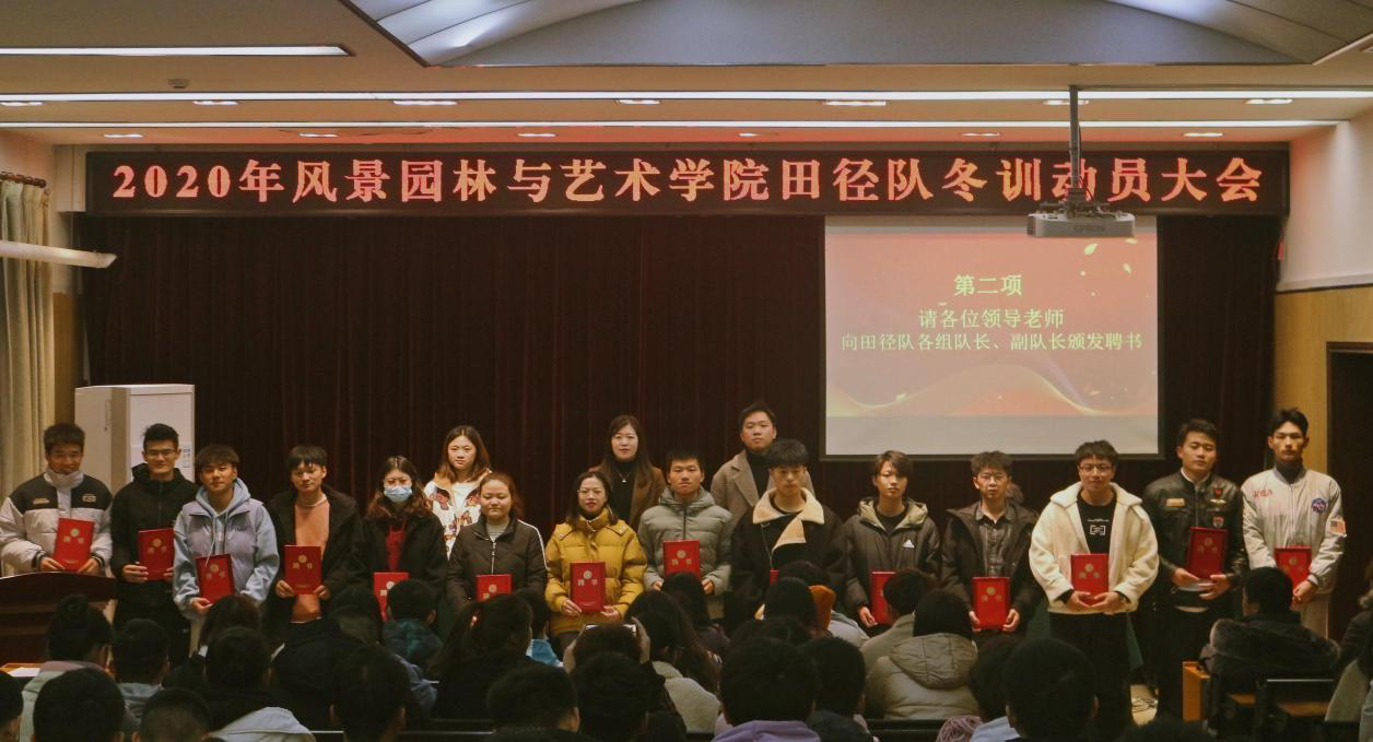 会上,李雨澍宣读2020年风景园林与艺术学院田径队队员名单,各位老师向田径队队长、副队长颁发聘书,并对运动员们在以往比赛中取得的优异成绩给予充分肯定。学生会体工委负责人向阳宣读风景园林与艺术学院田径队冬训时间安排及纪律要求。2018级风景园林2班冯浩哲作为优秀运动员代表发言,他提出冬训是基础训练的最佳时期,运动员要听从队长安排,立足自身实际出色地完成训练任务。2020级产品设计3班岳亚威作为新生运动员代表发言,他表示自己会牢记初心,在训练中磨炼意志,增强体能,为学院争取荣誉。
