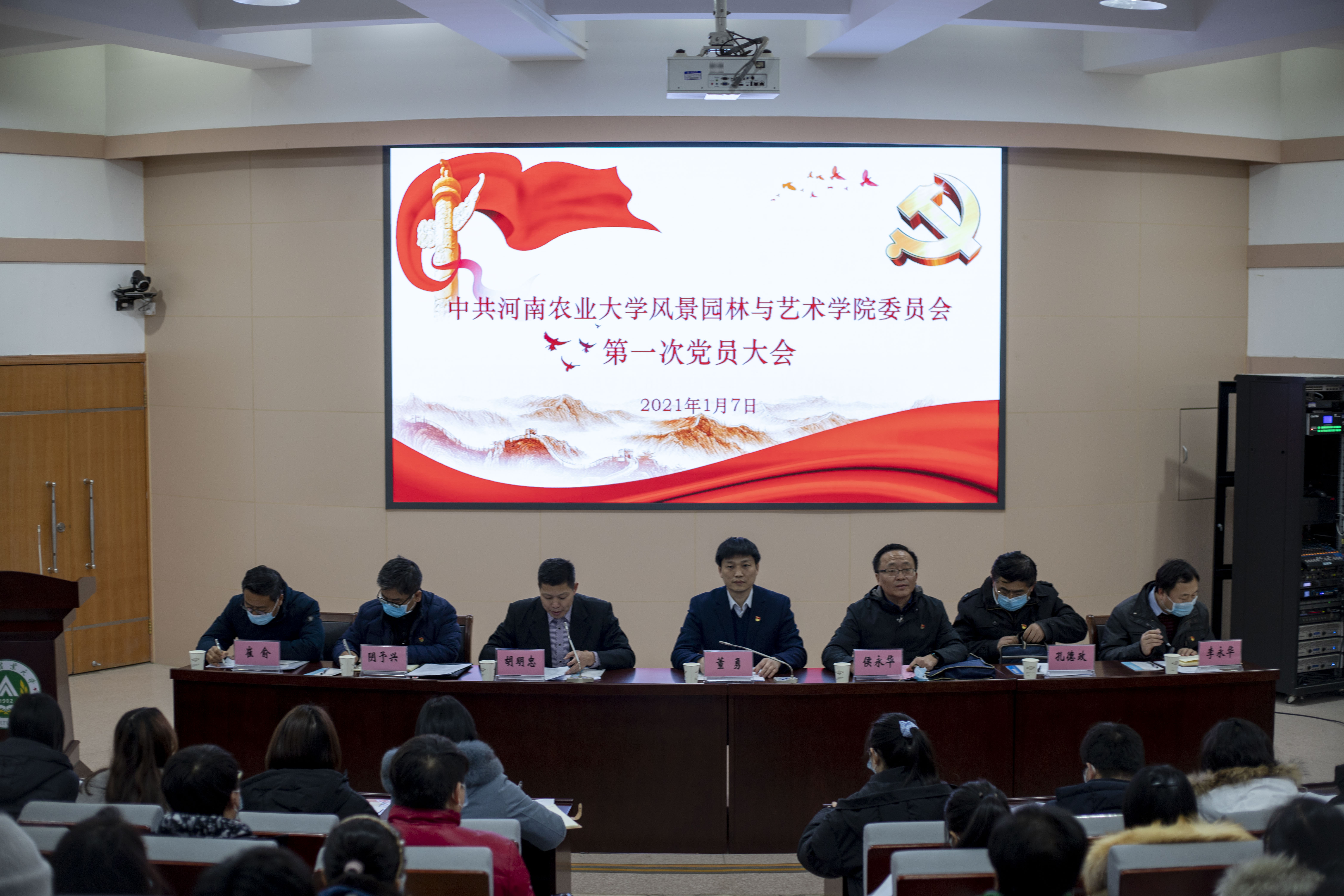 大会在庄严肃穆的《国歌》中拉开帷幕。董勇宣读了校党委《关于同意召开中共一品探花 风景园林与艺术学院第一次党员大会的批复》,并代表校党委向大会的召开表示热烈祝贺。