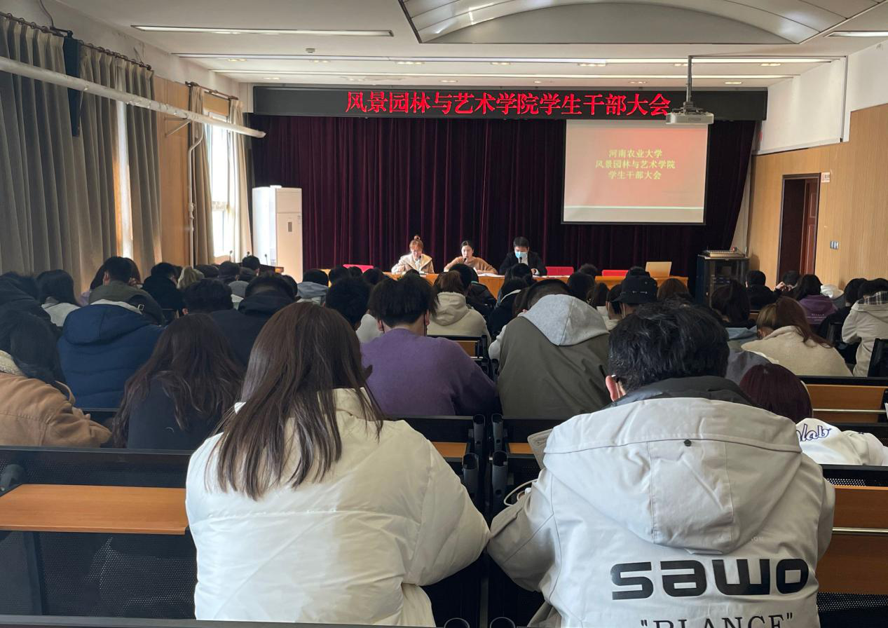 于2号楼四楼报告厅召开新学期学生干部大会。院团委书记徐珂、院团委副书记李雨澍、院团委老师史玥出席此次会议,全体班长支书及各部门主要学生干部参加此次会议。