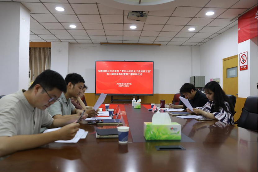 伴随着庄严的国歌声,“青年马克思主义者培养工程”第二期结业典礼暨第三期启动仪式正式开始。首先,马焱宣读了《风景园林与艺术学院青年马克思主义者培养工程第二期培训班结业学员名单》。2020级城乡规划1班刘申澳代表往期青马班优秀学员进行发言。他表示每位青马班学员要始终高举马克思主义旗帜,在学习和实践中提升自己的综合素质,充分发挥作为学生干部的力量,带领广大青年学生肩负起爱国使命和建设中国特色社会主义的重任。