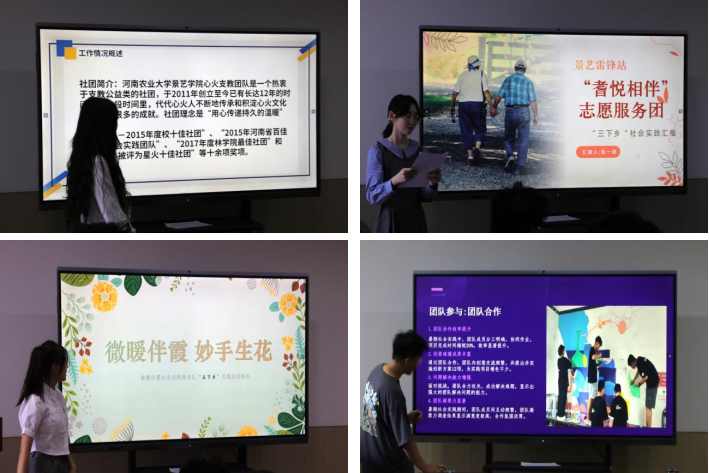 会上,各团队负责人依次上台,展示他们在本次社会实践活动中的优秀成果并分别进行汇报。评委们对各团队的表现进行了认真评审和打分。