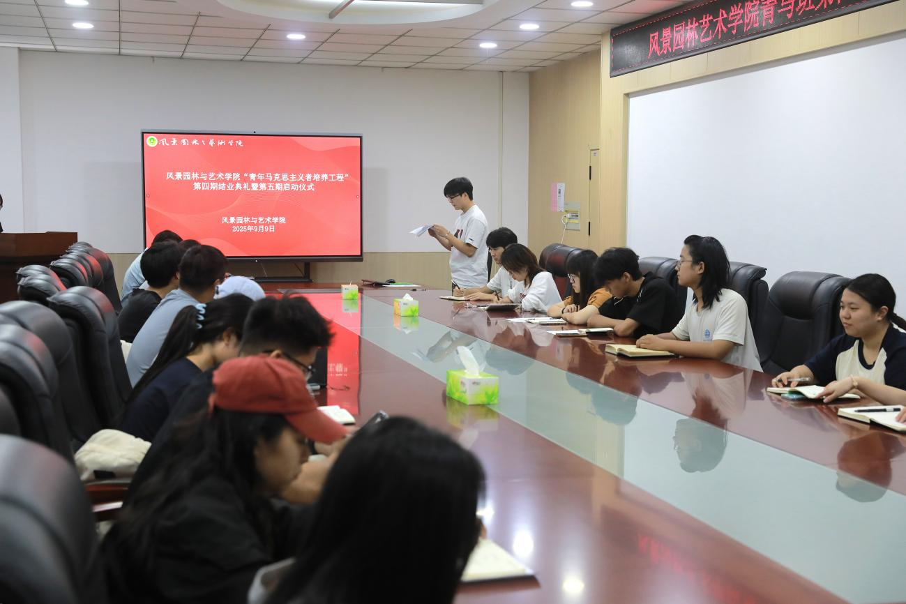 会上,史玥宣读《风景园林与艺术学院青年马克思主义者培养工程第四期培训班结业学员名单》并祝贺结业学员。第四期优秀学员代表仲嘉乐结合自身经历分享“高举旗帜跟党走”的学习感悟,为学弟学妹树立榜样。芦嘉俊宣读《一品探花 风景园林与艺术学院青年马克思主义者第五期培训班学员名单》;第五期学员代表韩建聪表示要在实践中提升本领,成长为“心中有国、肩上有担、胸中有墨”的青年马克思主义者。