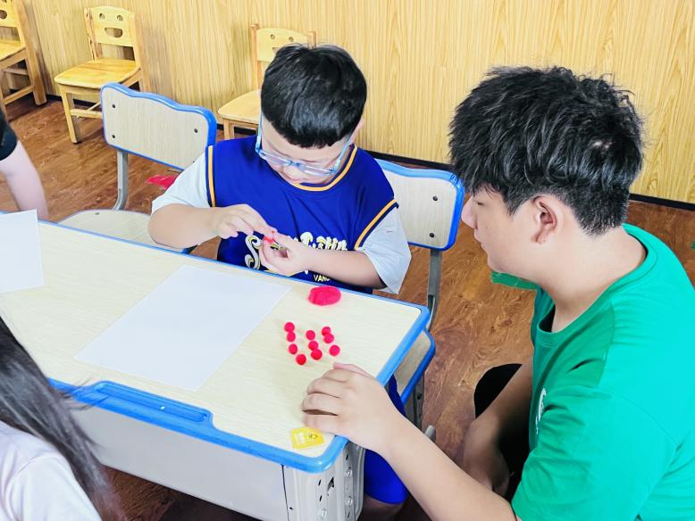 这次课堂的主题是用彩色黏土制作中国结装饰画,团队成员先向孩子们介绍中国结的来历和寓意,带领孩子们学习中国传统文化知识,并向他们示范制作过程。通过手工制作的方式,让孩子们体会到中国传统文化中具有独特美感和寓意的艺术形式。随后由孩子们自己动手实践,亲身体验,期间团队成员逐步引导孩子们完成中国结的制作。课堂上,欢声笑语不断,孩子们的脸上洋溢着快乐的笑容。