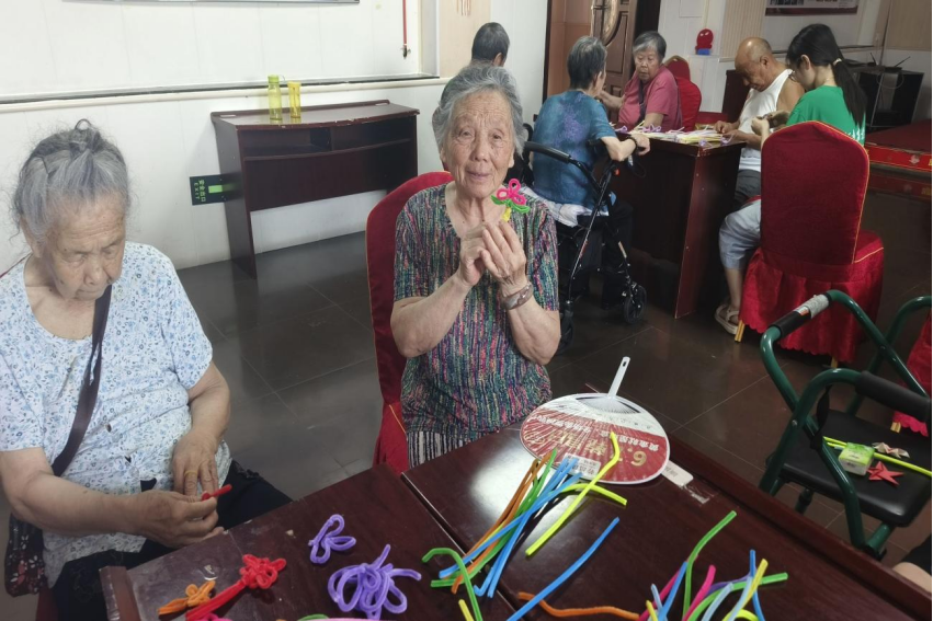 活动伊始,志愿者们与老人们进行叠杯子游戏,随着一声声指令,老人们很快就进入了状态,现场充满欢声笑语。随后志愿者和老年人们一起进行左手右手慢动作比赛,看似简单的游戏,却考验着老人们的手眼协调能力和反应速度。在热烈的氛围中,最后迎来了令人翘首以盼的扭扭棒活动。经过志愿者们的指导,老人们很快就拿起了扭扭棒开始创作,现场气氛热烈,爷爷奶奶们脸上洋溢着开心的笑容。