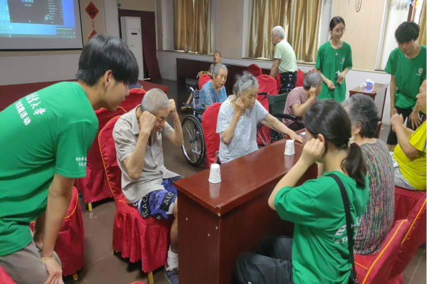 活动期间,团队成员为老人们组织了击鼓传花、杯子叠叠乐、念口令抢杯子等多项娱乐游戏,锻炼了老人们的反应力和记忆力,现场氛围热烈活跃。