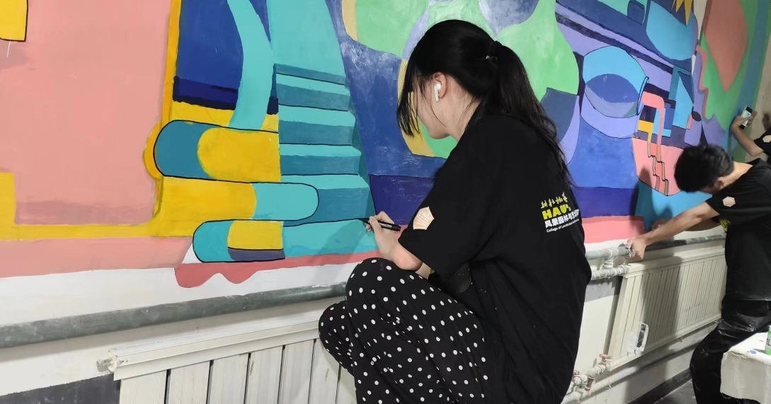 为深入学习贯彻习近平新时代中国特色社会主义思想,组织引导广大青年学生在社会实践中受教育、长才干、做贡献,7月5日,风景园林与艺术学院“乡村艺绘队”实践团前往河南省焦作市修武县西村乡当阳峪村金谷轩绞胎瓷非遗园开展三下乡暑期社会实践墙绘活动。