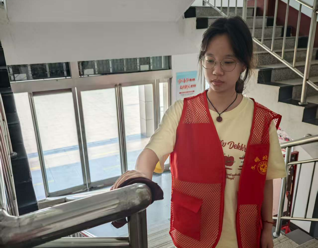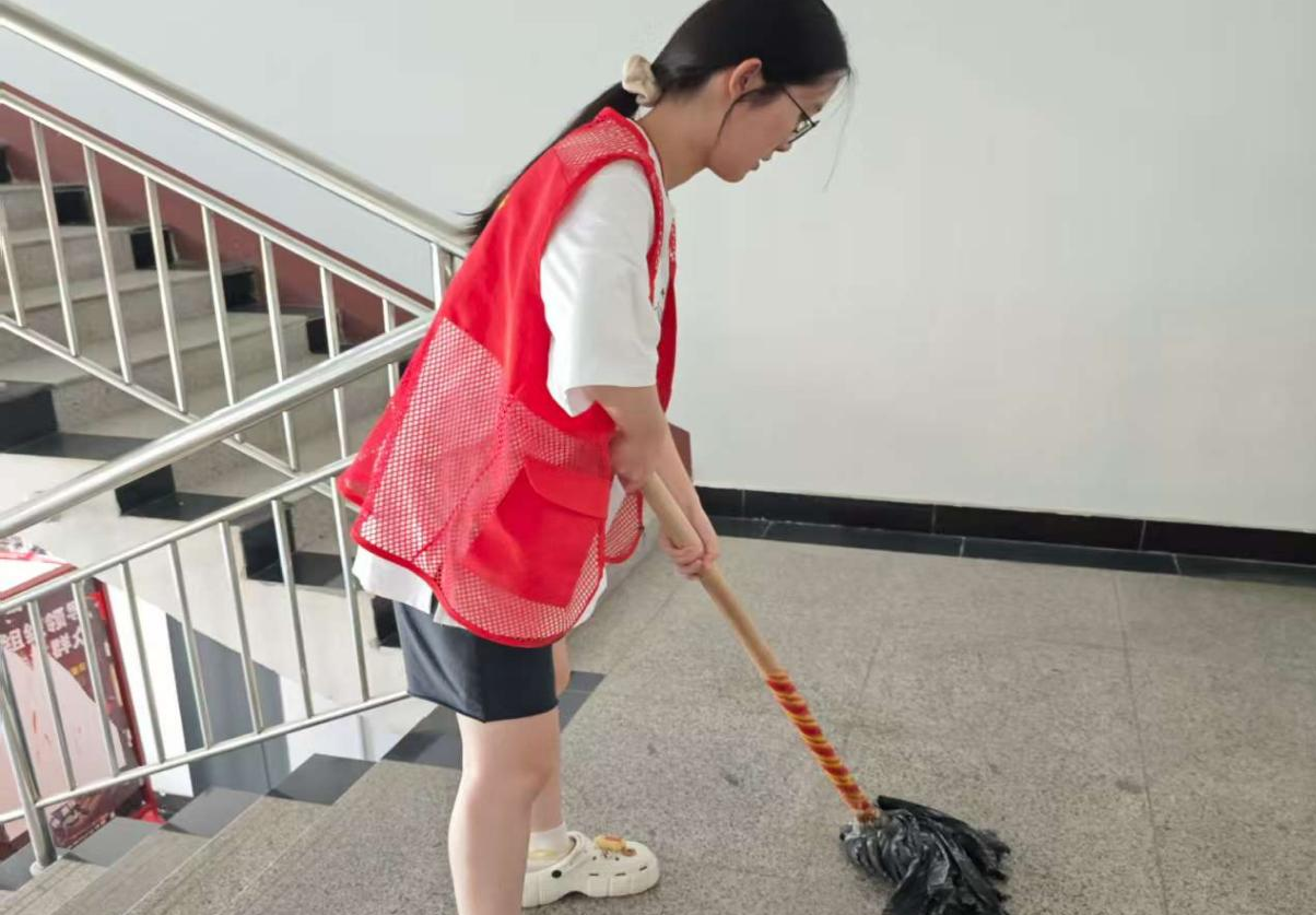活动中,团队负责人和成员们积极参与活动。他们身穿红马甲,分工协作。擦拭楼梯扶手时,专注于每一道细微划痕,让金属重新焕亮;挥动拖把清洁地面,不放过一处污渍,为居民打造洁净通行环境。