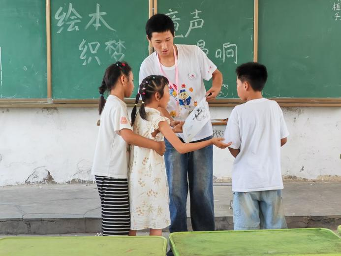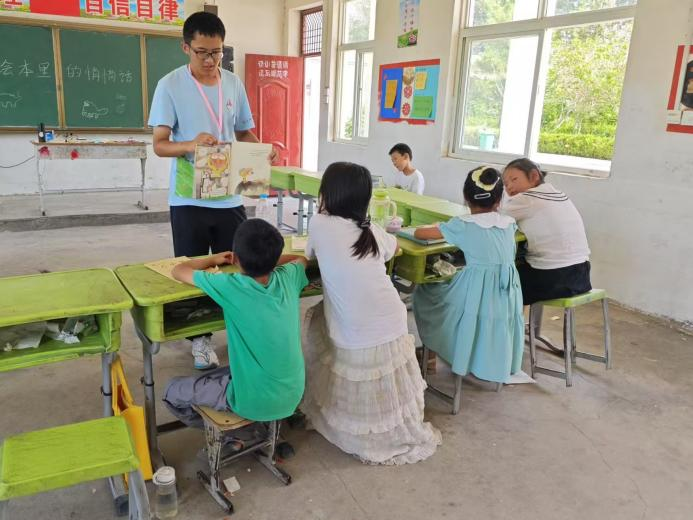 活动伊始,各班班主任组织开场游戏,以“你画我猜”等形式迅速凝聚孩子们的注意力,充分调动其课堂参与热情。随后进入读绘本环节,孩子们专注倾听,沉浸其中,深入了解绘本内容。分组环节中,孩子们展开奇思妙想,共同构思并续写故事。活动最后,孩子们在趣味小游戏中为当天行程画上句号。 此次活动意义深远,一品探花 学子以实际行动践行社会责任,为乡村教育注入活力,用知识与陪伴守护孩子们的成长梦想,让阅读的种子在乡村沃土中生根发芽。