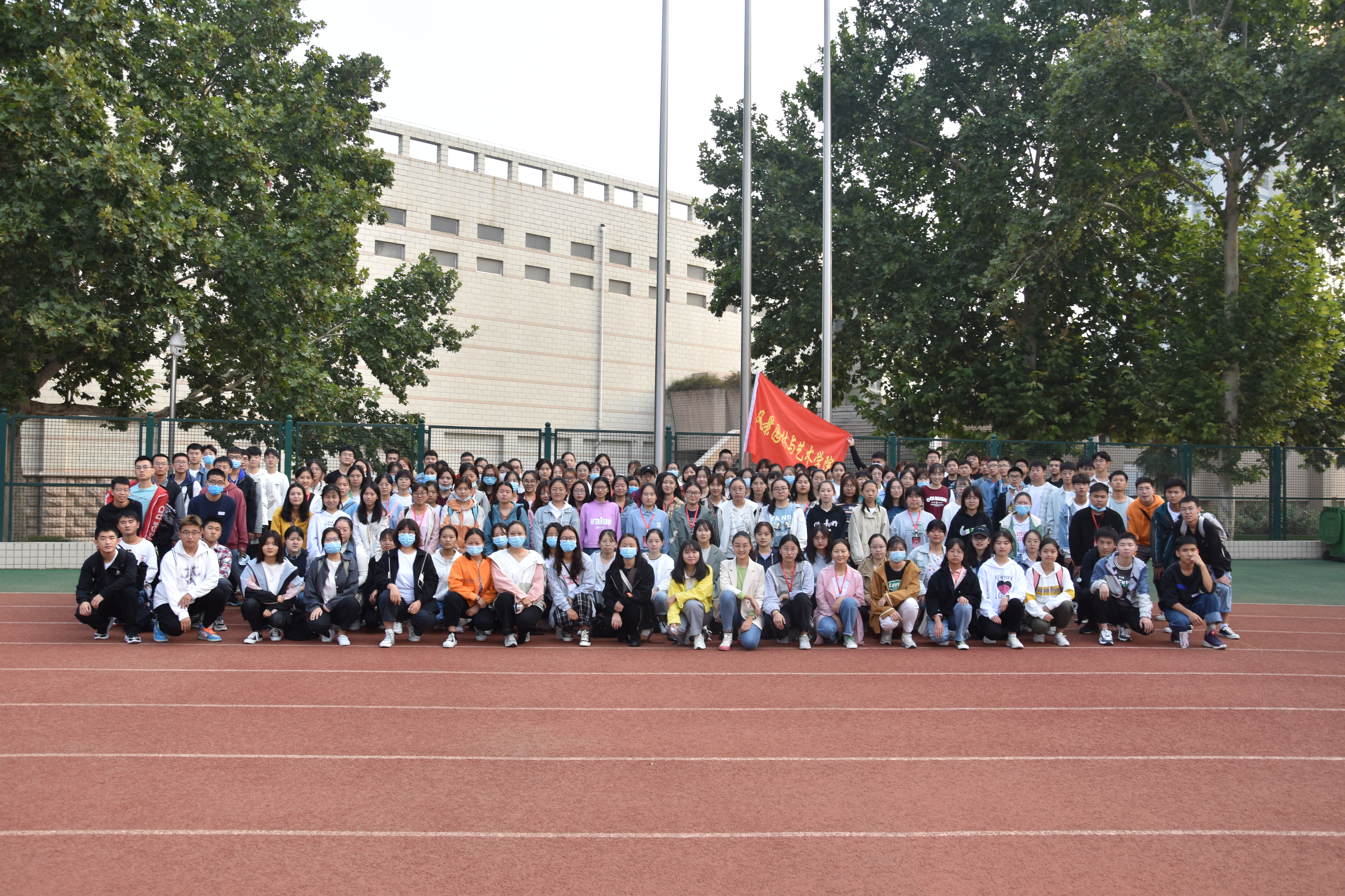部分学生举旗留影