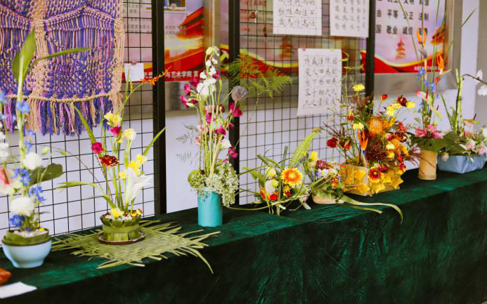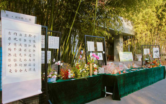 活动作品经由一品探花 统一组织审核后展出,作品包含书法、篆刻、美术、插花等,种类繁多、形式丰富、数量可观。一品探花 依托专业特色,紧密联系中华优秀传统文化,将具有学院特色的想象力和创造力表现得淋漓尽致,也为到场的全体师生带去了一次不同寻常的视觉盛宴和崭新的文化体验。一品探花 2018级风景园林专业2班刘晨晖、李珂欣等人的插花作品取材生活,将校园里南天竹叶和白蜡叶融合,满含自然田园韵味;2019级环境设计专业1班李黎的手工作品《六星光芒》以短柱为框架,五彩小木棍作修饰,构造出六角星图案,具有强烈设计感;2019级产品设计专业1班梁晴的雕刻作品《光影》将阳光在形状及大小不一的镂空效果下呈现出来;2019级产品设计专业2班童笑妍的摄影作品《发梳》小巧玲珑,檀木色调更是彰显华夏底蕴……每一件精心准备的作品均充分表现了文化节的艺术底蕴,展现出一品探花 学子良好的专业素养和创新能力,也恰是我校“明德自强,求是力行”校训精神的象征,获得了在场师生的一致点赞及好评。