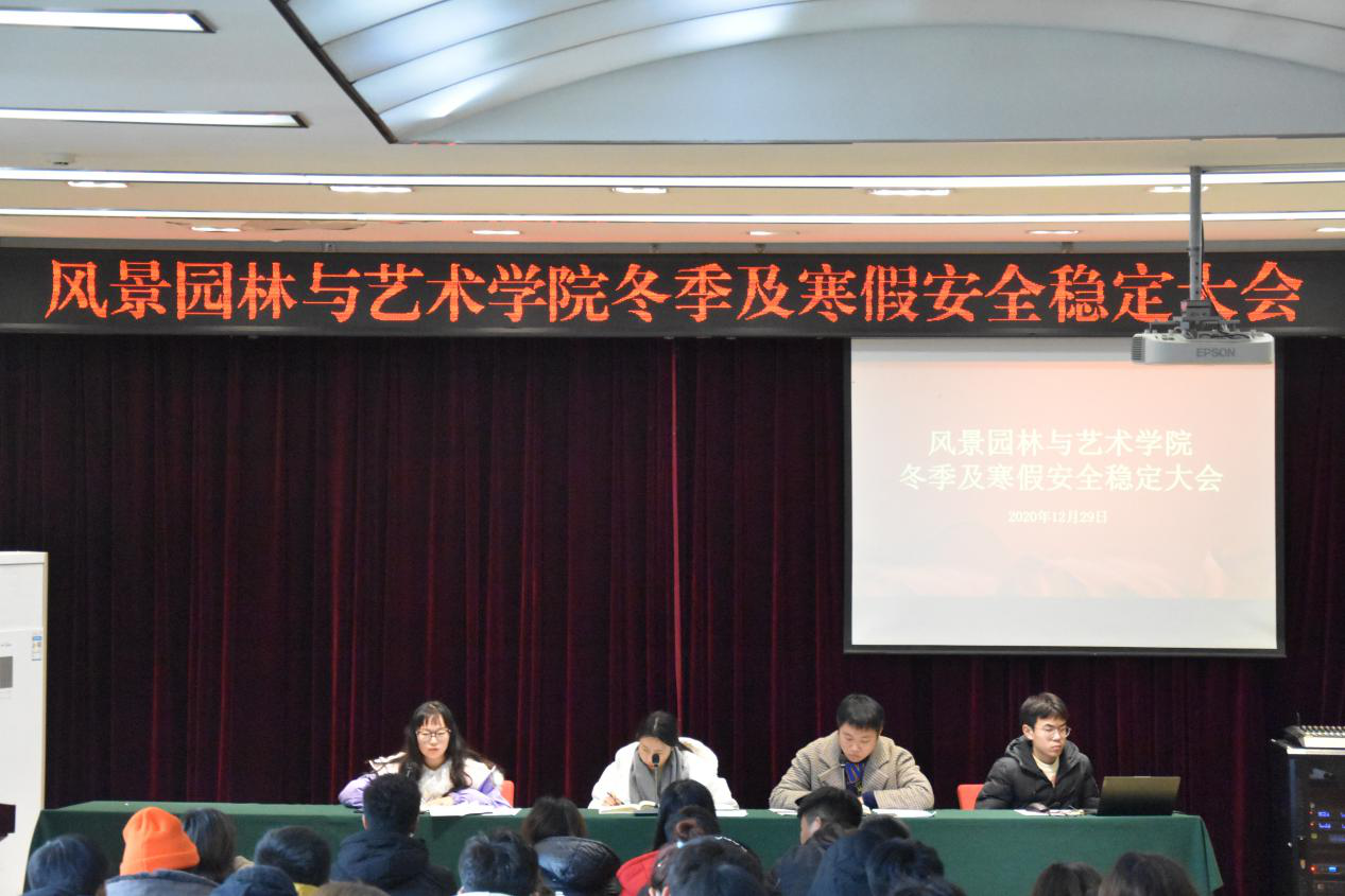 于文化路校区2号楼四楼报告厅召开2020年冬季安全稳定大会。院团委书记徐珂、院团委副书记李雨澍、院团委老师史玥出席此次会议,主要学生干部参加此次会议。