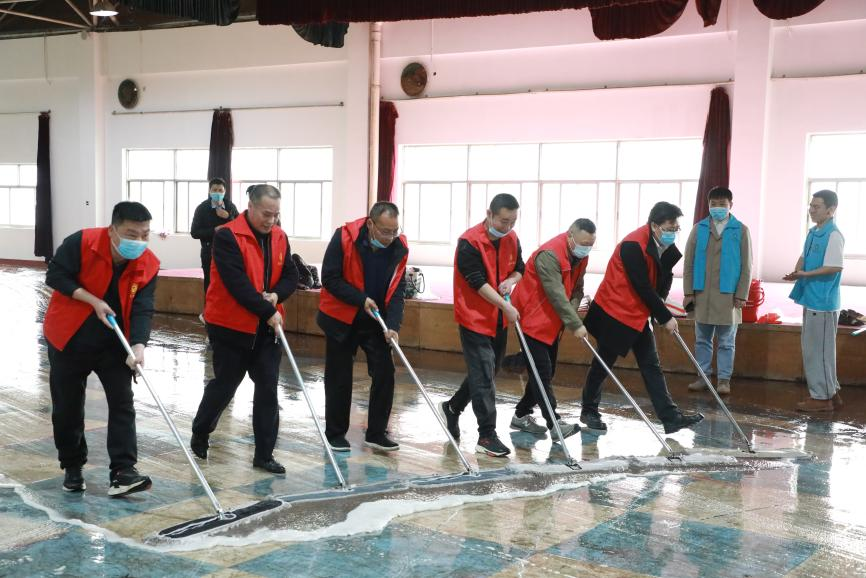 活动伊始,负责人向志愿者们介绍此次活动的目的,强调疫情防控中要加强安全防控意识和公共卫生意识。活动过程中,小组内首先进行分工,不同的组员负责不同的区域。志愿者们互帮互助,齐心协力,由上到下进行清扫,按照扫地—拖地—摆好运动器材的顺序,有条不紊地对不同区域进行整理清扫,活动过程中,志愿者们热情洋溢,分工明确、相互配合。