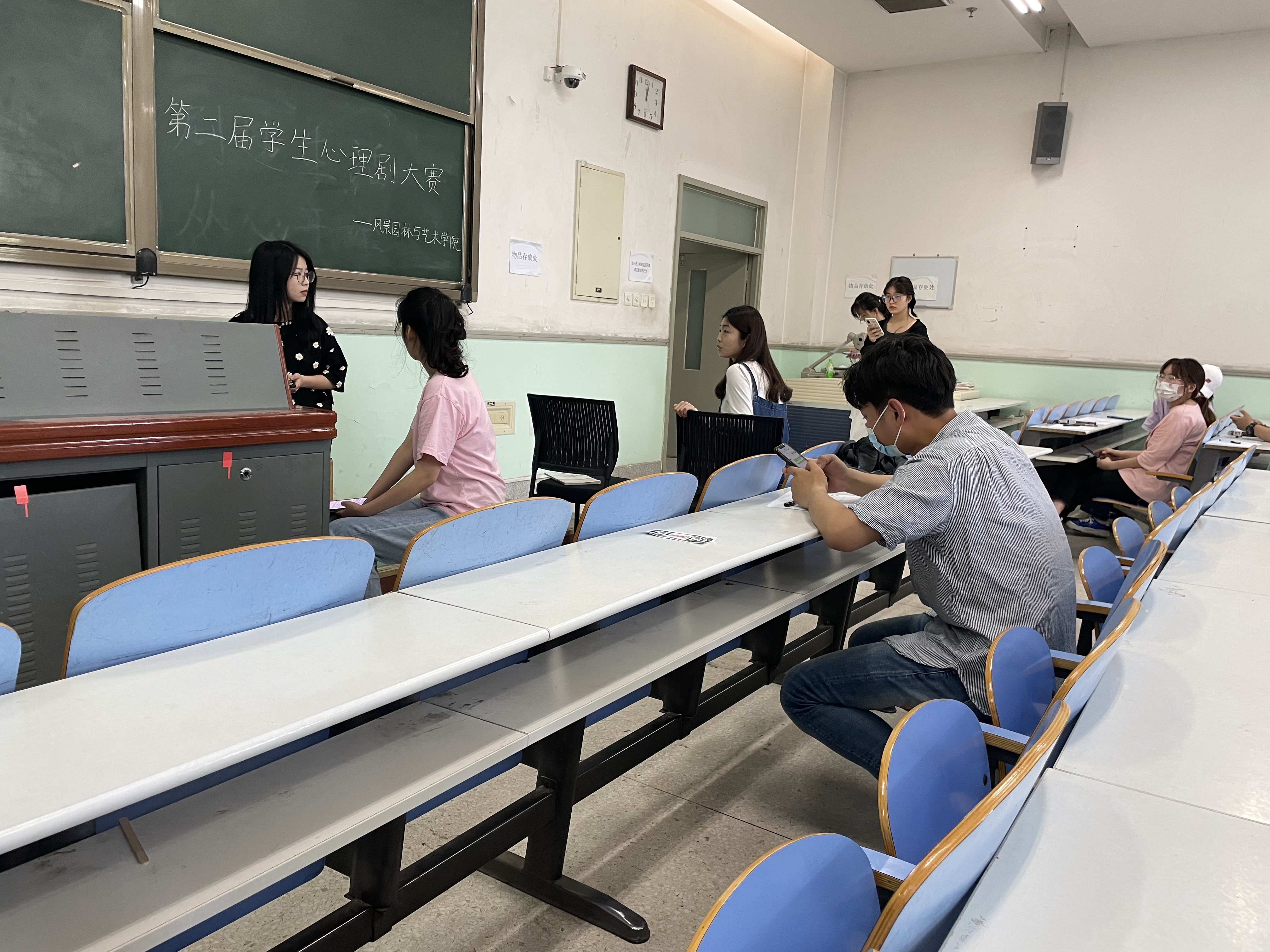 在文化路校区工程楼206教室举办第二届学生心理剧大赛。院团委老师芦嘉俊出席本次评审现场,院学生会相关负责人和学生演员参加了此次评审。