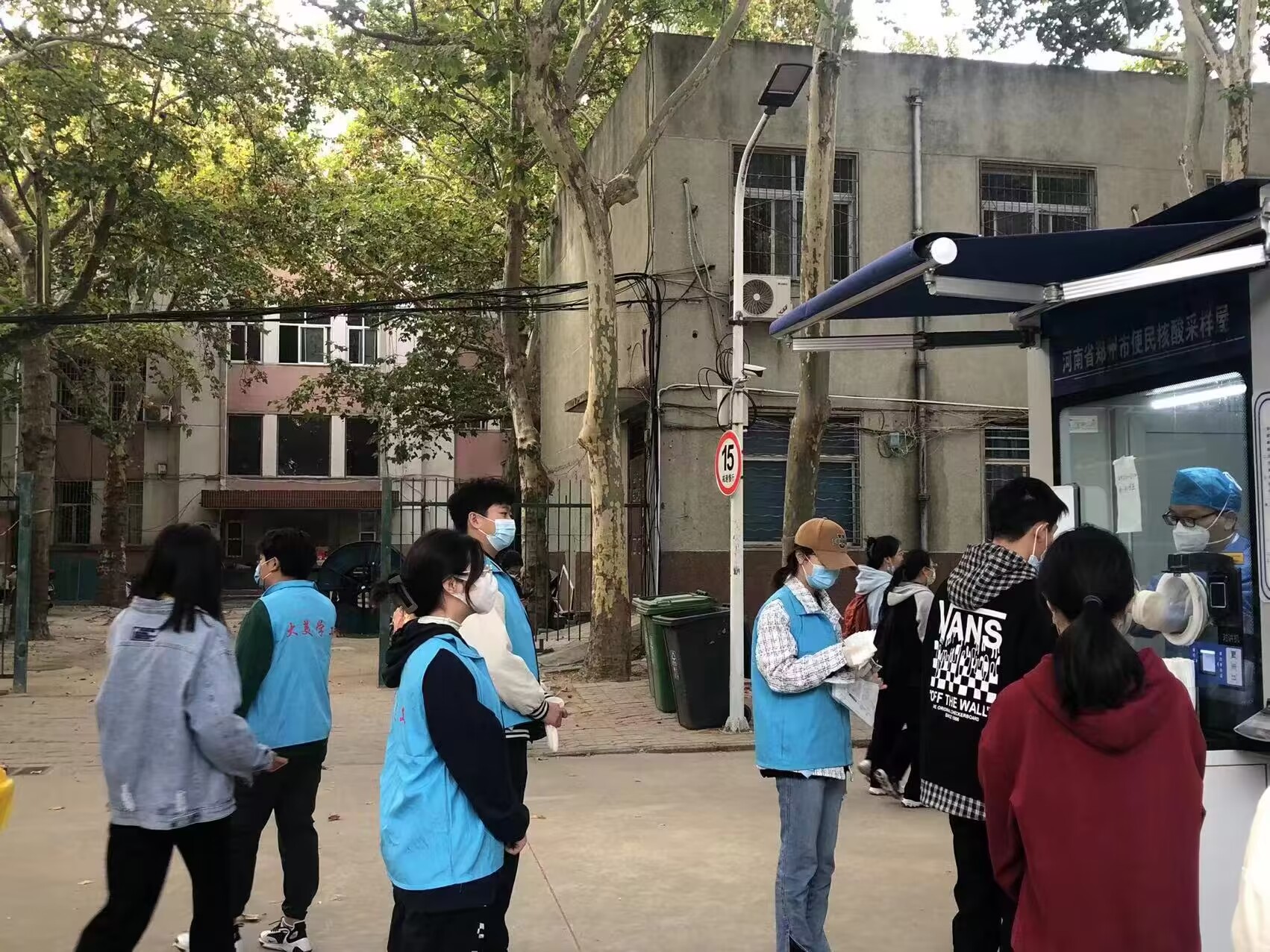 为进一步凝聚一品探花 青年志愿者力量,为师生提供安全、稳定、有序的校园环境,一品探花 师生志愿者于10月25日再次前往文化路校区核酸检测采样点开展志愿服务活动与校园巡逻工作。院党委副书记赵九阳,院团委老师芦嘉俊深入核酸检测现场,亲切慰问了志愿者们。