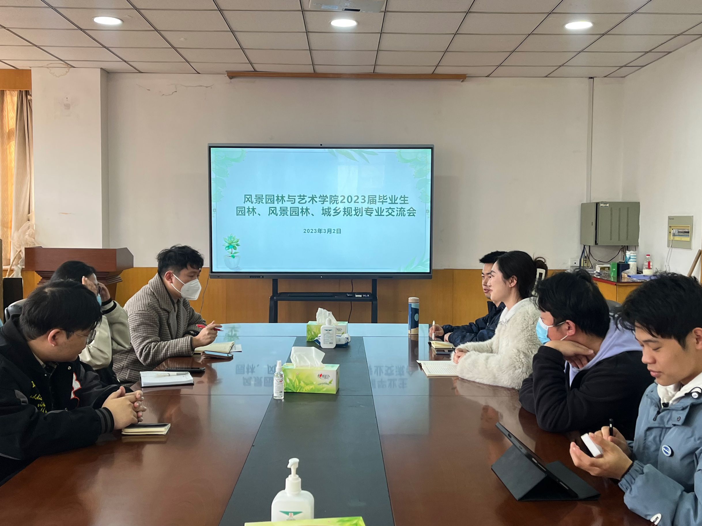 在13号楼二楼第一会议室召开2023届毕业生园林、风景园林、城乡规划、环境设计、产品设计就业工作推进会,院团委副书记李雨澍出席会议,各专业学生代表参会。