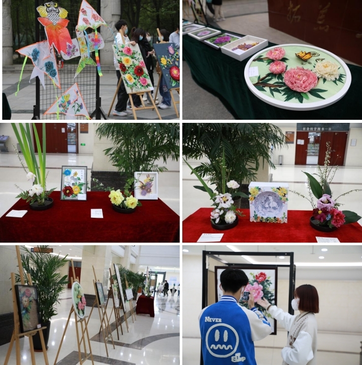 活动展示的作品均为师生们围绕牡丹手工完成的各类艺术作品,包括插花、衍纸、国画、简笔画、摄影、书法、手绘纸鸢等多类。水墨晕染出的牡丹跃然纸上,用各种彩纸卷出的牡丹栩栩如生,牡丹为主题的插花景观更是美丽华贵……一件件作品精巧细致、独特新颖,体裁丰富、风格多样,展现了学生们浓厚的艺术钻研兴趣和扎实的实践动手能力。活动现场气氛热烈活跃,驻足师生观牡丹、品花茶、赏书画,在欣赏优秀的美术作品中,体会到了指尖的艺术,营造了以“农大红”为背景的牡丹文化氛围,形成了集牡丹文化科普、传统文化游戏、艺术作品品鉴为一体的校园特色文化。