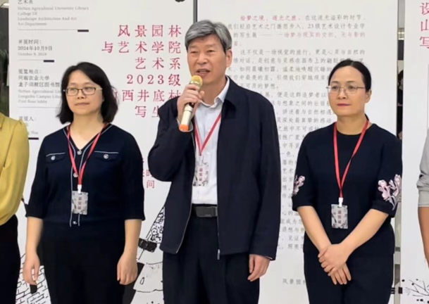 侯永华在致辞中对各位领导、教师及学生的到来表示热烈欢迎,并向为此次展览付出努力的师生表示衷心的感谢。他强调了写生实习的重要性,指出同学们在山西井底村深入体验了乡村的宁静与自然的壮丽,通过创作生动的画作,显著提升了审美鉴赏力和绘画技能。艺术既是生活的反映,又超越生活,此次作品展充分展示了同学们扎实的绘画技巧、深刻的感悟以及对艺术不懈的追求。最后,侯永华对同学们寄予了鼓励与期望,希望他们持续保持对艺术的热爱与追求,创作出更多优秀的艺术作品。