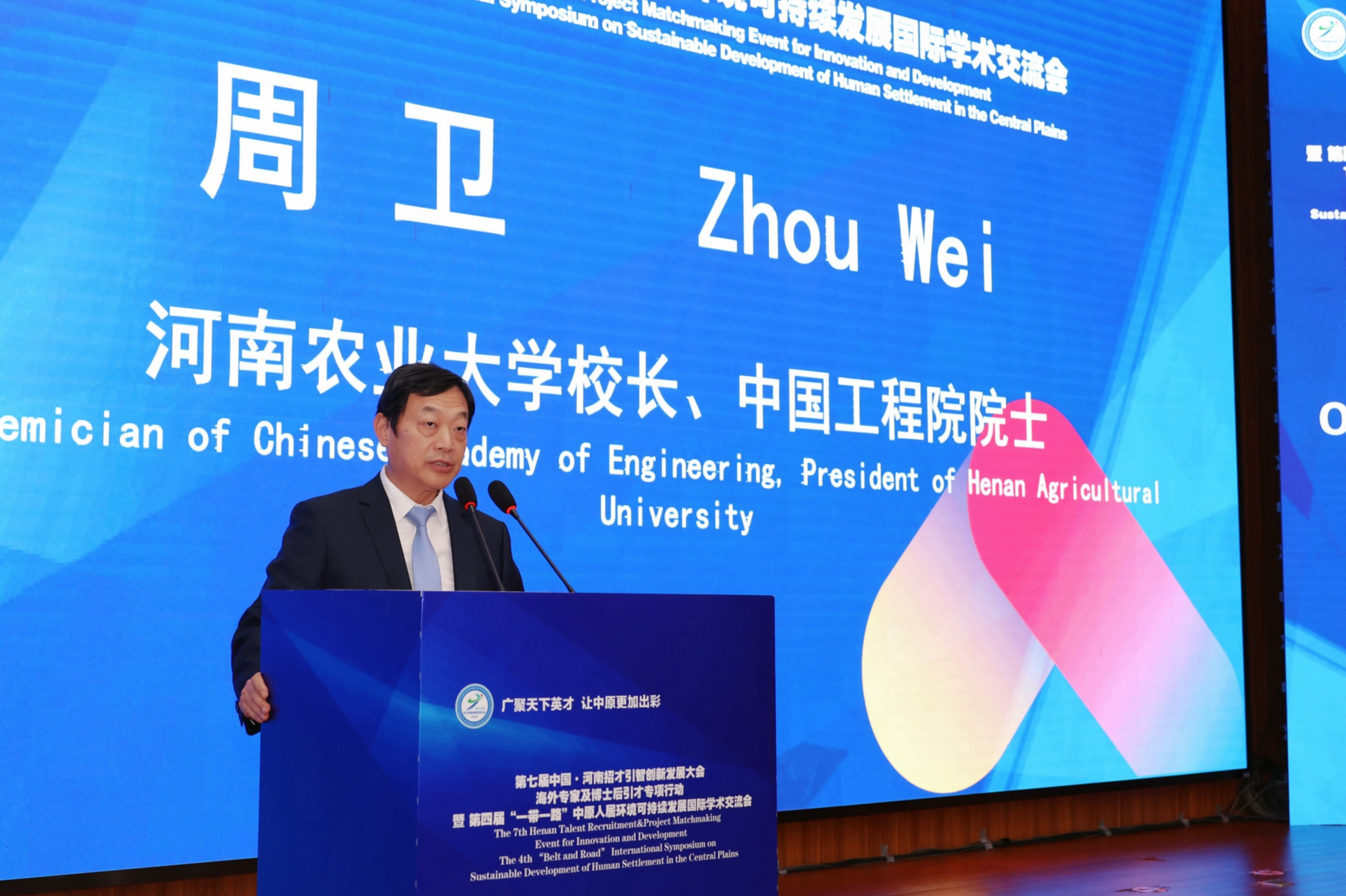 周卫代表学校致辞,从教学科研成果、师资力量团队等方面介绍了我校的基本情况。他表示,本次国际学术交流活动以中原人居环境可持续发展为主题,对于共同谋划城市建设品质提升,积极推动乡村全面振兴具有重大意义。当前学校正在以创建中国特色一流农业大学为目标,坚持抢抓机遇促发展,努力积蓄一流人才,打造一流团队,构筑一流平台,建设一流学科,建设新型良好人居环境,与各界专家学者进一步增进友谊和合作。