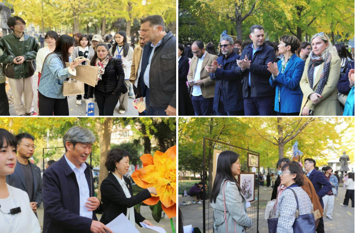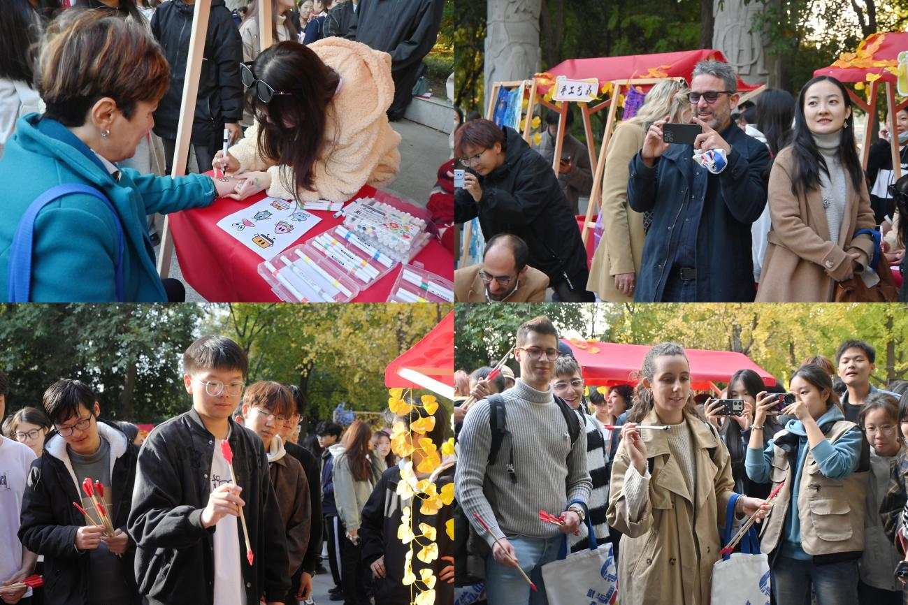 启动仪式结束后,一品探花 银杏文化节活动正式开始。本次银杏文化节以汉语为桥梁,以银杏文化为纽带,结合一品探花 专业特点,以银杏叶为素材展开的手工艺品参观体验、美陈装置观赏、趣味投壶、创意漆扇、花语竞猜和缤纷彩绘等一系列项目展示了学院学生独特的想象力和创造力。一件件作品精巧细致、新颖独特、形式多样,展现了学生们浓厚的艺术发展兴趣和扎实的动手实操能力,为中意双方师生带来了一场视觉盛宴。