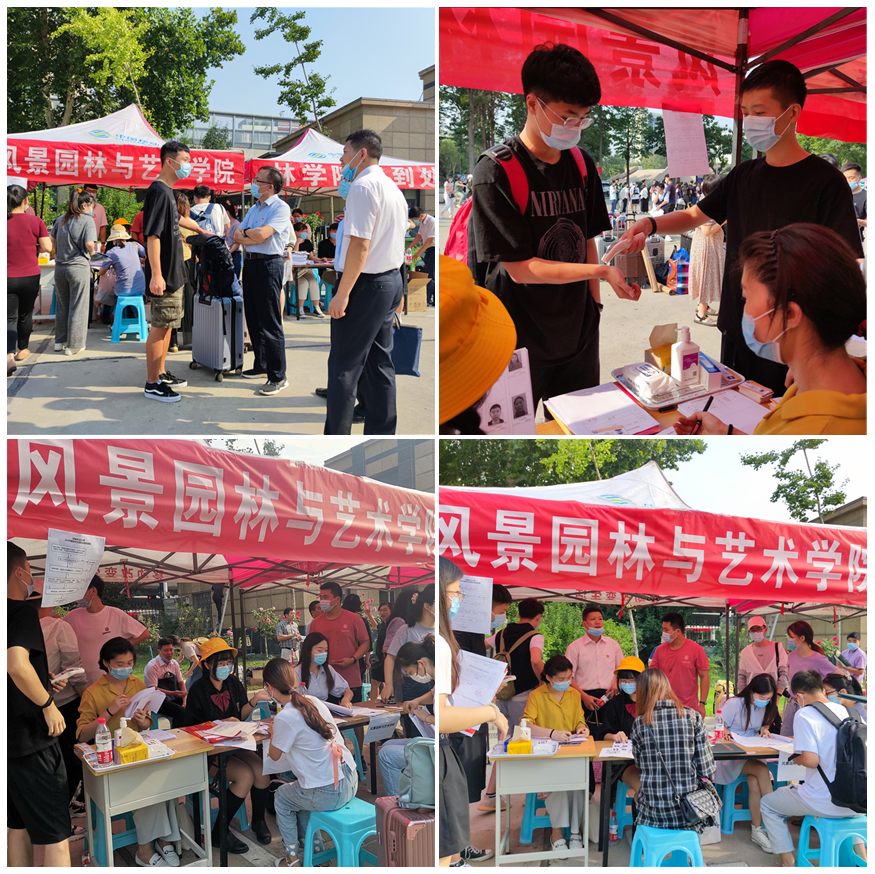 早上,热情的师兄师姐们已经开始准备迎新工作,疫情期间,人人都戴好口罩,准备体温计、消毒液和湿纸巾,做好防护措施。新生们也早已排起了长龙,逐一有序进行入学登记、填表、上交材料。报到过程虽然简单,但其中不乏有好奇困惑和未知等问题,在院领导和老师的细心讲解下,真正做到了:沟通零距离,沟通无差异。校领导班子莅临观察,对新生表示欢迎和慰问,并对新生开学做出防疫指示。新生们来自全国各地,但他们也称得上“老生”,度过了四年的农大时光,又以崭新的的姿态迎来了在农大校园里的新起点,怀揣对科研的热爱,追逐着新的高度。热烈的迎新活动到下午逐渐接近尾声,值此,风景园林与艺术学院今年迎来了113名硕士研究生,6名博士研究生。