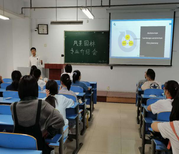 风景园林专业介绍会上,刘保国老师指出该专业学习包含设计、管理等多方面知识,致力于培养高级工程技术人才和管理人才。希望大家能努力学习专业理论知识并将其灵活应用于测绘、实习考察中,通过四年努力,学有所成。同时,他强调了自主学习的重要性,教育新生用热忱和自信不断提升思想境界,为自己开创更大的人生价值。
