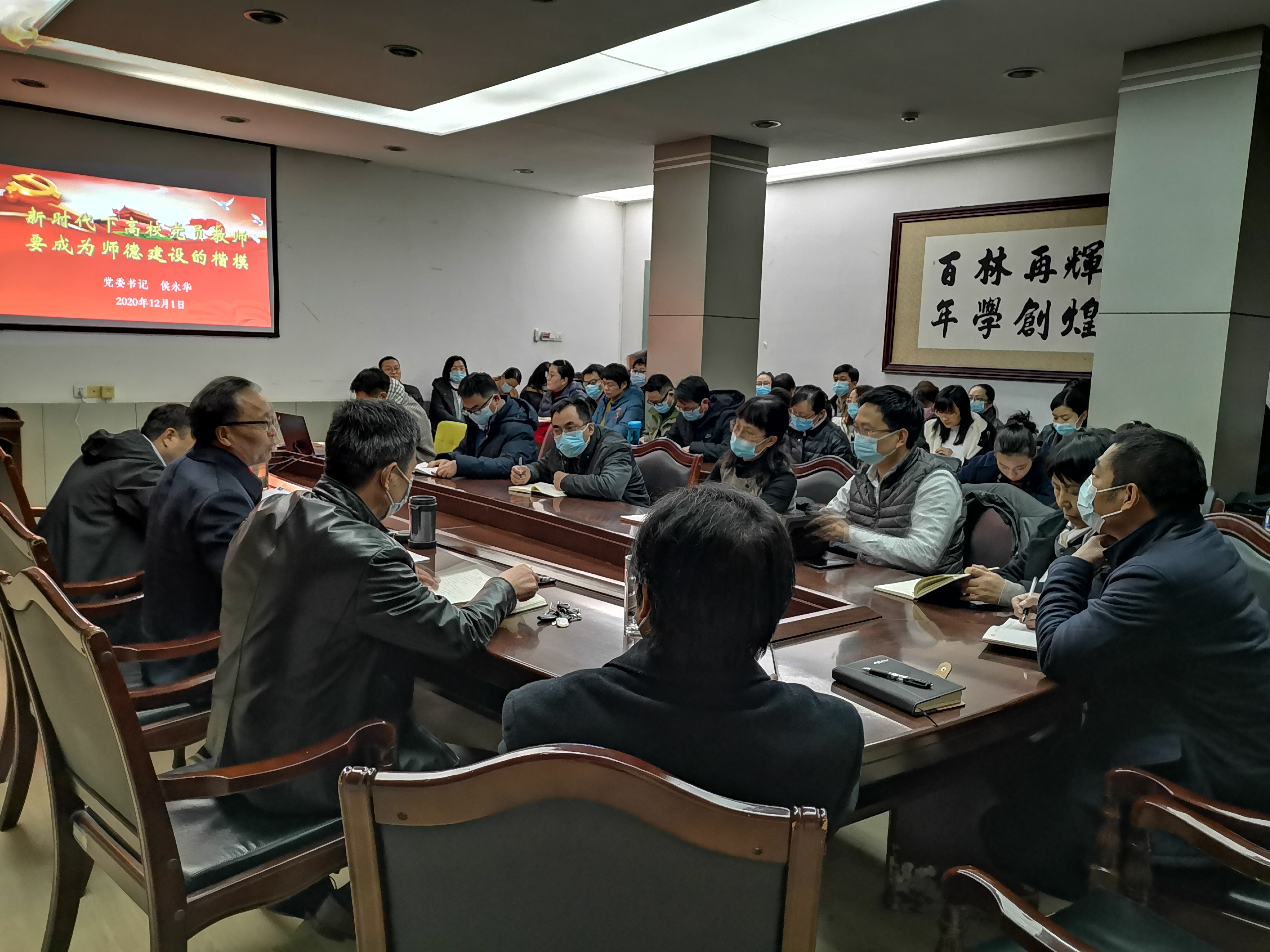 首先,侯永华从为什么要进行师德师风建设和怎么提高思想道德修养两方面出发,强调当代党员教师应充分认识到加强改进师德建设的紧迫性和重要性,将完善人、教育人、优化人渗透到教育教学的每一个环节。他表示广大党员教师应保持积极向上的进取心,坚定学习终身化理念,将党员意识内化于心、外化于行。最后,侯永华就如何发挥教师的价值导向作用对全体教工党员提出三点要求:一是要了解教师职业特点,明确教师角色的价值,对学生有温度、有感情,全心全意做好教育工作;二是要具有党员意识,思想上严格要求自己,提高自我要求的标准,牢记“十不得,十不准”;三是要与时俱进,认真钻研教学方法,更好地履行责任,积极为一品探花