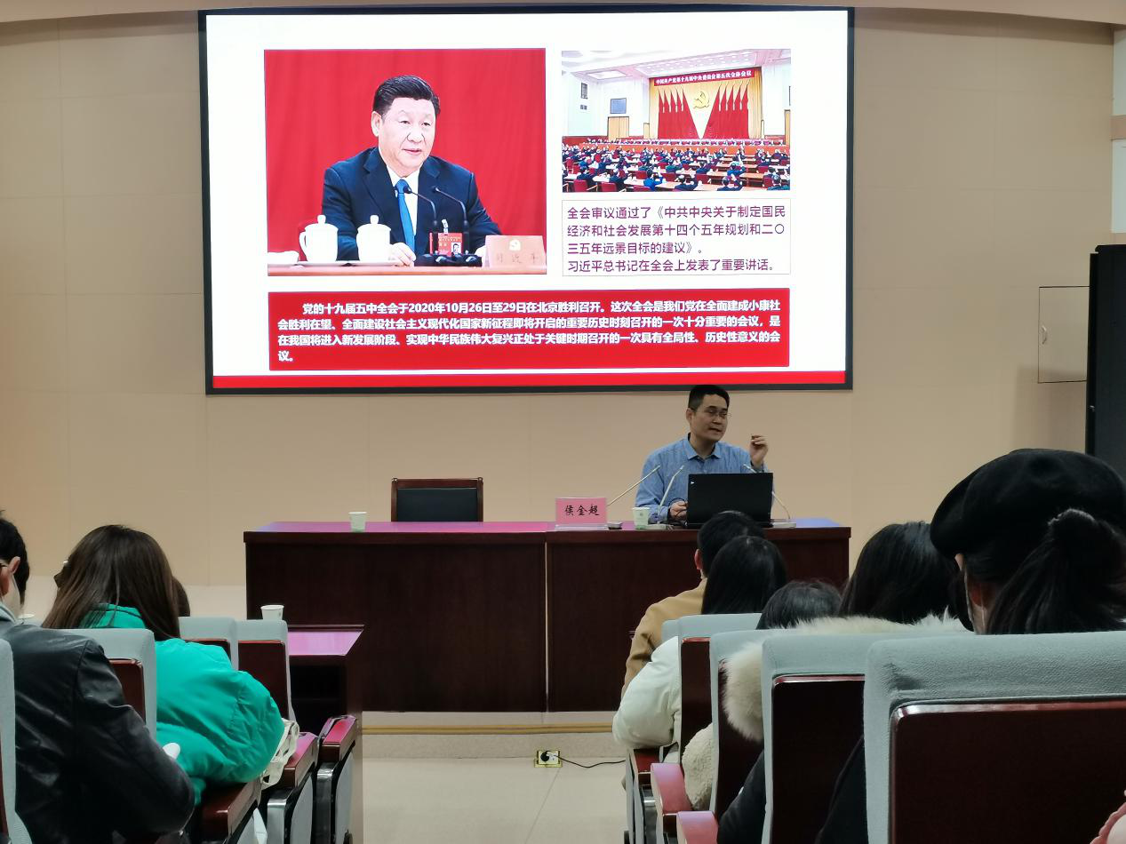 师生宣讲党的十九届五中全会精神。学院办公室和院团委老师,学生党员和主要学生干部参加会议。会议由院党委副书记胡明忠主持。