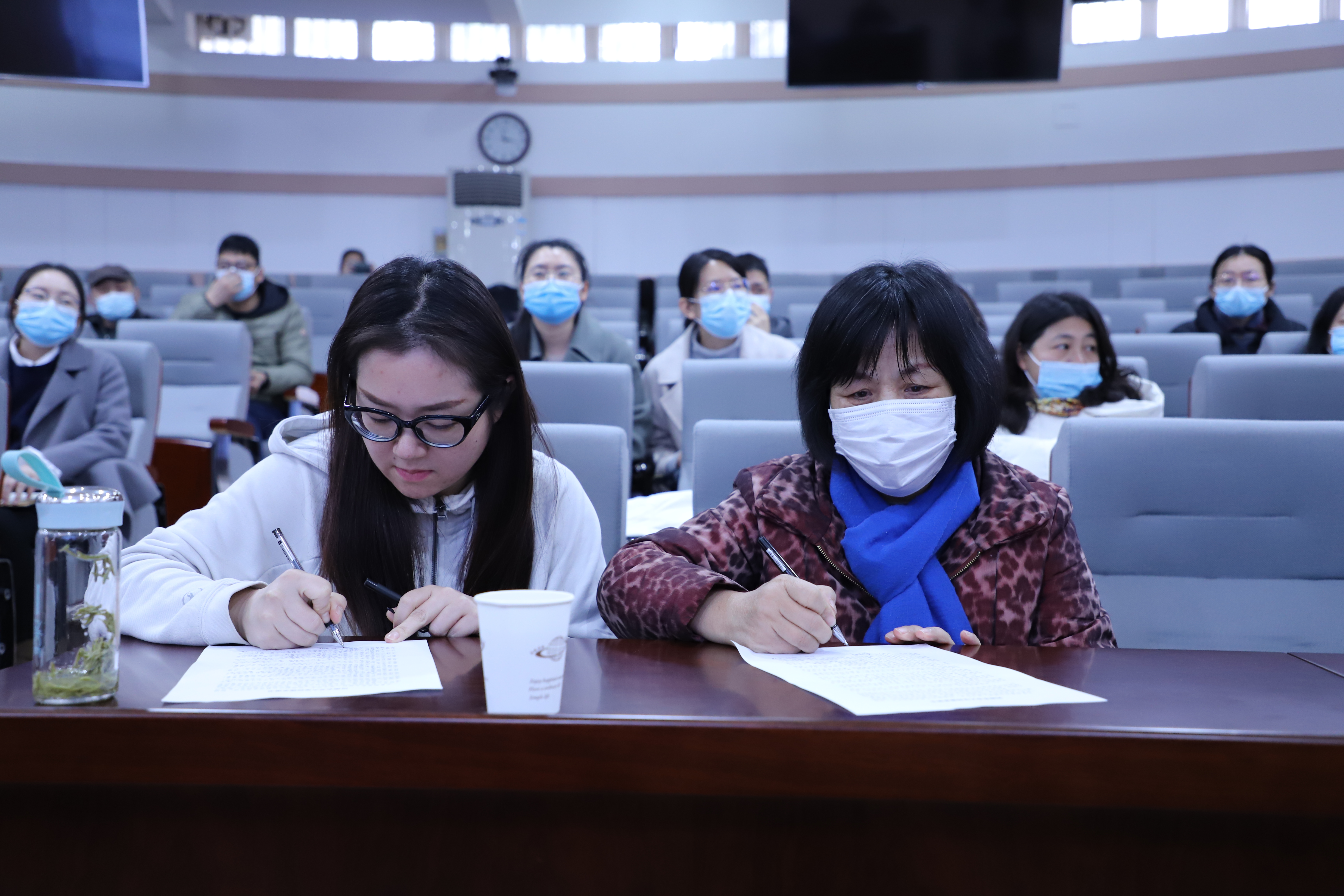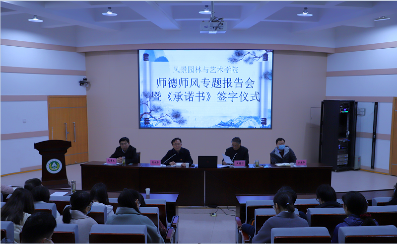 报告结束,进行学院《师德承诺书》签订仪式。在学院领导的带领下,全院教师依次在《师德承诺书》上签下自己的名字。