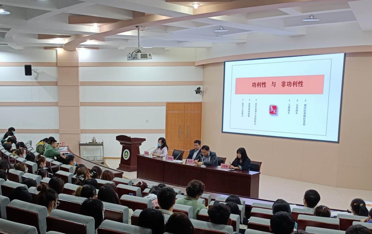 会上,胡明忠对近年来考研形势及一品探花 相关专业考研作了深入的数据分析;对本科生出国交流学习的政策、形式和相关准备等作了简单介绍。李永华对一品探花 专业优势及研究生招生情况进行了详细的说明。李琪曼、王雪倩针对当前大学生就业形势,并结合艺术类学生考研现实情况,在“为什么考研”、“如何准备考研”和“考研与未来发展”等方面为学生做了全面指导和分析,鼓励学生尽早确立目标和方向,全面进入紧张复习状态。雷雅凯、刘艺平结合自身考研经历,着重从学硕与专硕的区别及院校选择等方面给予指导和中肯建议,鼓励学生明确自身定位,辨析考研与就业之间的关系,摒除杂念,踏实学习。