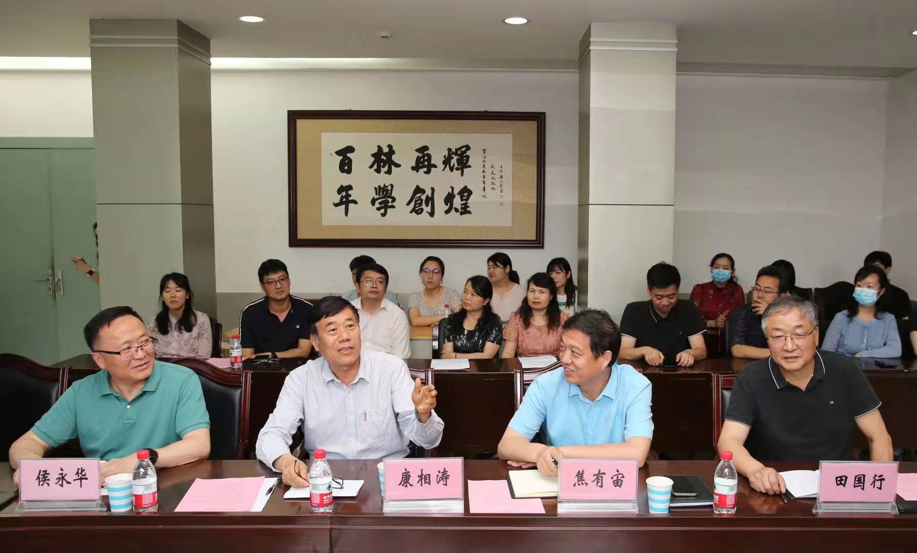 李振华和专家评审组组长王庆斌就专家评审进校工作流程和工作要点做出部署。