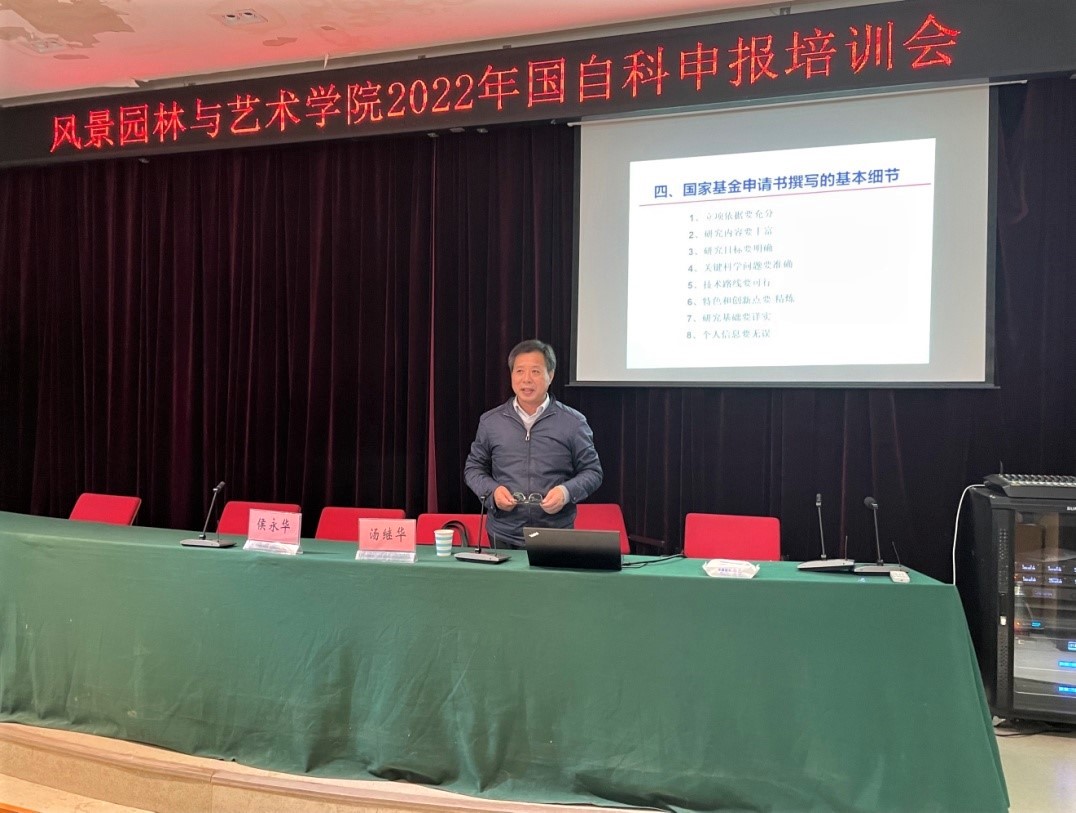 我校学术副校长汤继华为风景园林与艺术学院作2022年国家自然科学基金申报辅导报告