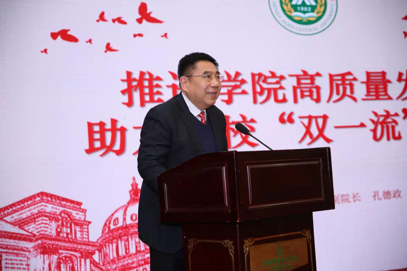 最后,党委书记魏蒙关发表讲话。他指出,建校120周年是学校发展历程上的一个重要里程碑,是凝聚广大师生、校友、社会各界力量助力学校更好发展的良好纽带,是振奋精神、昂首向前的崭新起点。他对进一步办好郑州校友组织,使其发挥更大作用提出了三点希望。一是要联通校友情感,加强自身建设。通过举办丰富多彩、形式多样的活动,加强学校与校友、校友与校友之间的联系和互动,为校友提供更好的服务,共创郑州校友工作新局面。二是要发挥校友作用,支持学校建设。要积极努力、创造条件,鼓励广大校友以他们的智慧和热情服务学校,不断创新校友支持母校、回馈母校的方式。三是要汇聚校友力量,服务郑州发展。要把郑州校友组织建设成支持郑州建设和发展的重要通道,推动地方经济建设的重要载体,为郑州的发展贡献我们农大人的力量。