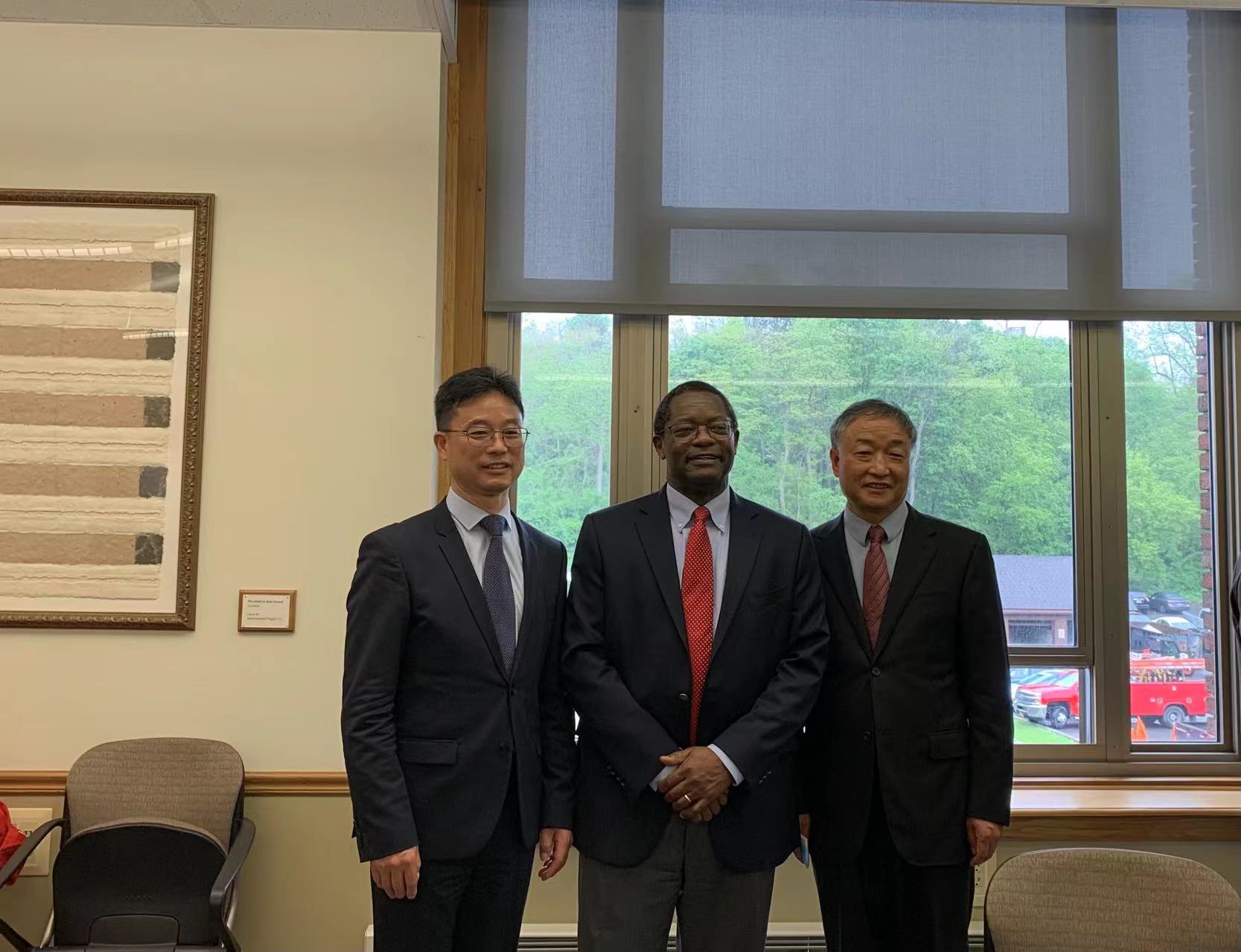 杨军指出,在当下全球遭受新冠疫情肆虐和中美双边关系步入关键时期的复杂环境下,院长田国行率队亲赴纽约州立大学开展合作,不仅促成合作办学暨双学位授予项目顺利签约,还顺利组建了3个学科创新引智团队,开拓了从本科到硕博士研究生及访问学者全过程、从学生到教师队伍多层次的合作局面,值得高度赞赏。他还表示,驻纽约总领事馆将全力支持双方合作事业发展,愿意同中国留学基金委员会一道努力,促成中美合作创新资助项目申报工作,为赴美留学人员构建奖学金及生活补助等多方面制度化资助体系,将全力帮助一品探花 申请成为中国政府奖学金单位,为美方来华留学人员提供多渠道奖学金支持。总领馆将始终为促进双方学校开展深度全面合作提供全面协助。