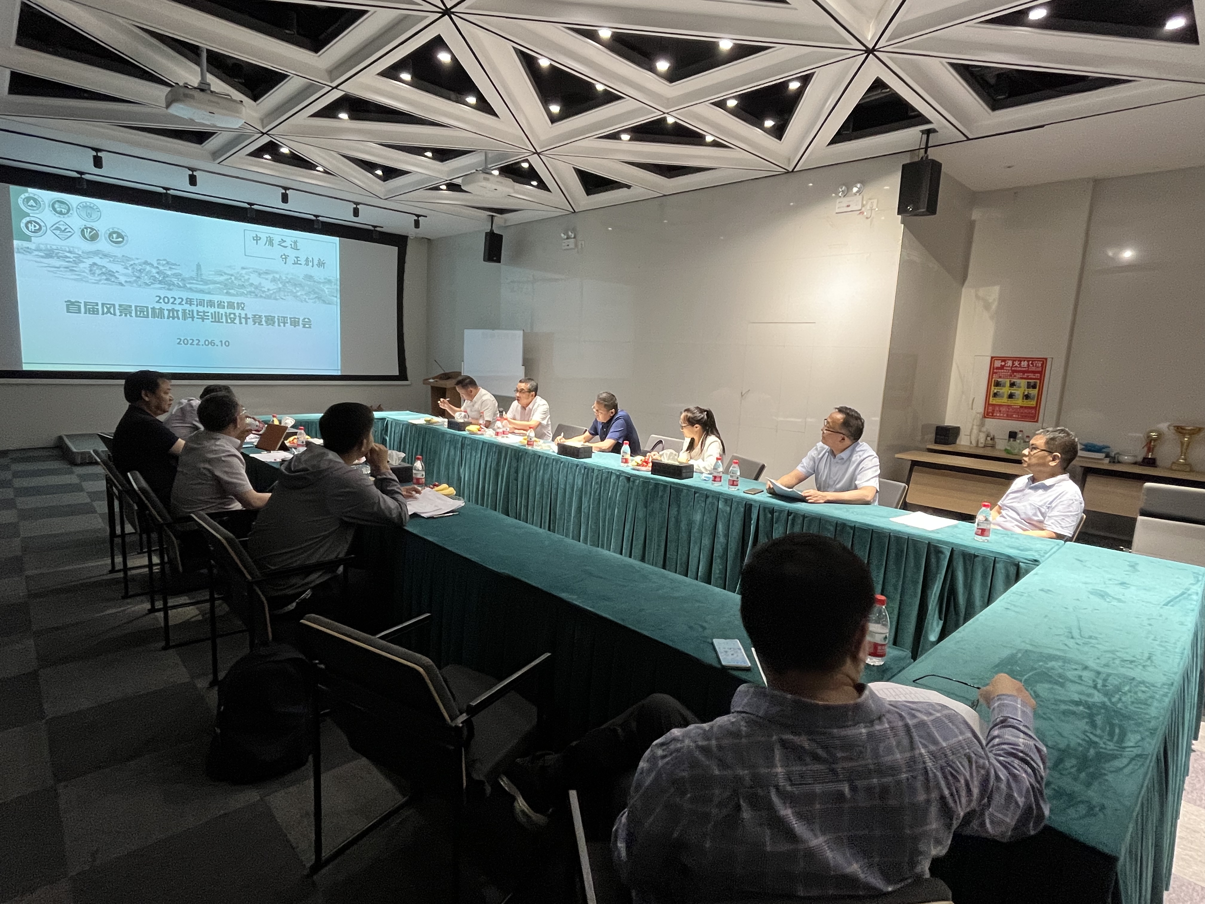 本次竞赛于2022年3月12日在农大景艺学院微信公众号发布竞赛通知,截止到5月6日,共收到省内7所高校作品111份;5月30日-6月5日,7所高校和6大设计企业分别选派一名专家成立专家评审委员会,完成专家初次匿名评审;根据专家打分,按照排名顺序选出入围作品50份进入6月10日的总决赛。总决赛采取线上和线下相互结合的形式,评审委员会主席由一品探花 王鹏飞教授担任,评委为河南科技大学燕亚飞、河南理工大学张运兴、华北水利水电大学王旭东、河南科技学院毛达、许昌学院毕翼飞、河南城建学院甘陶冉等老师以及企业评审专家河南人禾景观设计有限公司总工李志超、郑州市市政工程勘测设计研究院总工林春阳、绿洲生态环境有限公司总工史屹峰、河南省景观规划设计研究院有限公司宋彦峰总工、河南省城乡规划设计研究总院股份有限公司高工穆占强、郑州绿之林文化传播有限公司工程师王瑞、北京自由创林景观规划设计有限公司高工吴修远。