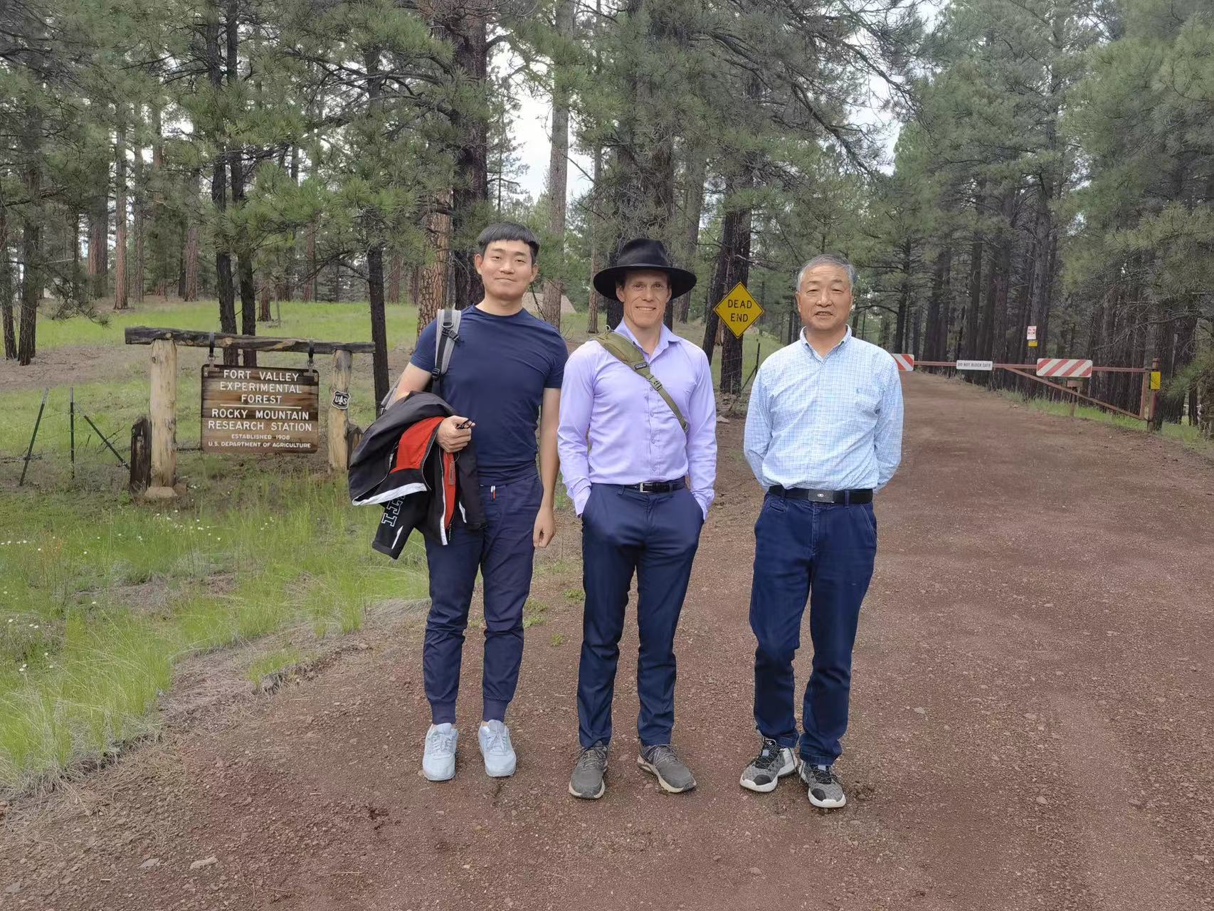 库什曼对田国行一行到访表示热烈欢迎并全程陪同介绍参观了观测站新老站址。该观测站成立于1908年,位于亚利桑那州北部大峡谷国家森林公园内的Fort Valley地区,是全美成立最早的集生态环境监测与保护、森林经理与林业资源保育、风景园林历史遗产规划与保护位为一体的全方位生态环境监测系统。塞缪尔详细介绍了生态观测站成立背景,发展历程及主要研究内容,他重点介绍了观测站目前利用大数据收集与应用管理、计算机建模与参数化模拟等新技术手段应对全球气候变化、生态系统保护、碳贮存与碳中和等方面的研究进展,表示十分期待同中方开展全面、多样、灵活合作,为探索城市雨水资源管理与生态安全保护,自然空间与城市空间的协同演进等研究课题贡献力量。