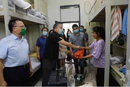 走访过程中,领导老师们给新生带送来了水果表示慰问和关怀,深入了解了学生返校后的思想、学习、生活状况,耐心细致地解答学生们的问题,帮助学生更快融入大学校园生活。侯永华亲切询问学生假期生活及返校感受,嘱咐大家大学期间要全面发展、多点开花,同时强调在疫情期间加强自身防护,严格按照学校疫情防控工作通知要求,坚持每日体温检测和健康打卡,配合学校做好相关防疫工作。田国行勉励新生要努力学习专业知识,珍惜青春时光,言信笃行,学有所成,争做品学兼优之人,以良好的精神面貌和积极进取的心态开启新学期的学习生活,在未来的崭新征程中绽放光芒。
