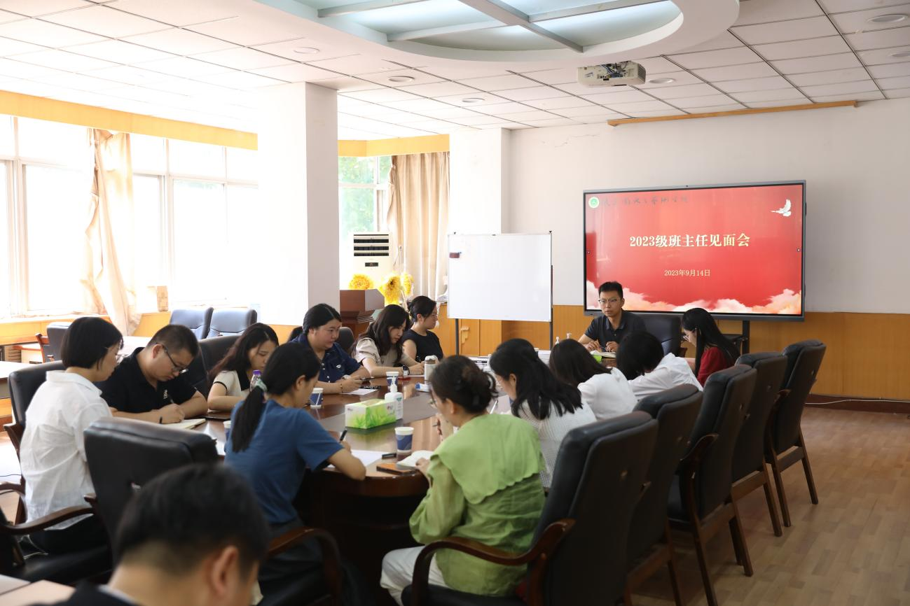 于13号楼二楼第一会议室召开2023级本科新生班主任工作会议。院党委副书记赵九阳、正科级组织员李雨澍、院团委老师周子涵出席会议,全体新生班主任及助理班主任参加会议。会议由院党委副书记赵九阳主持。