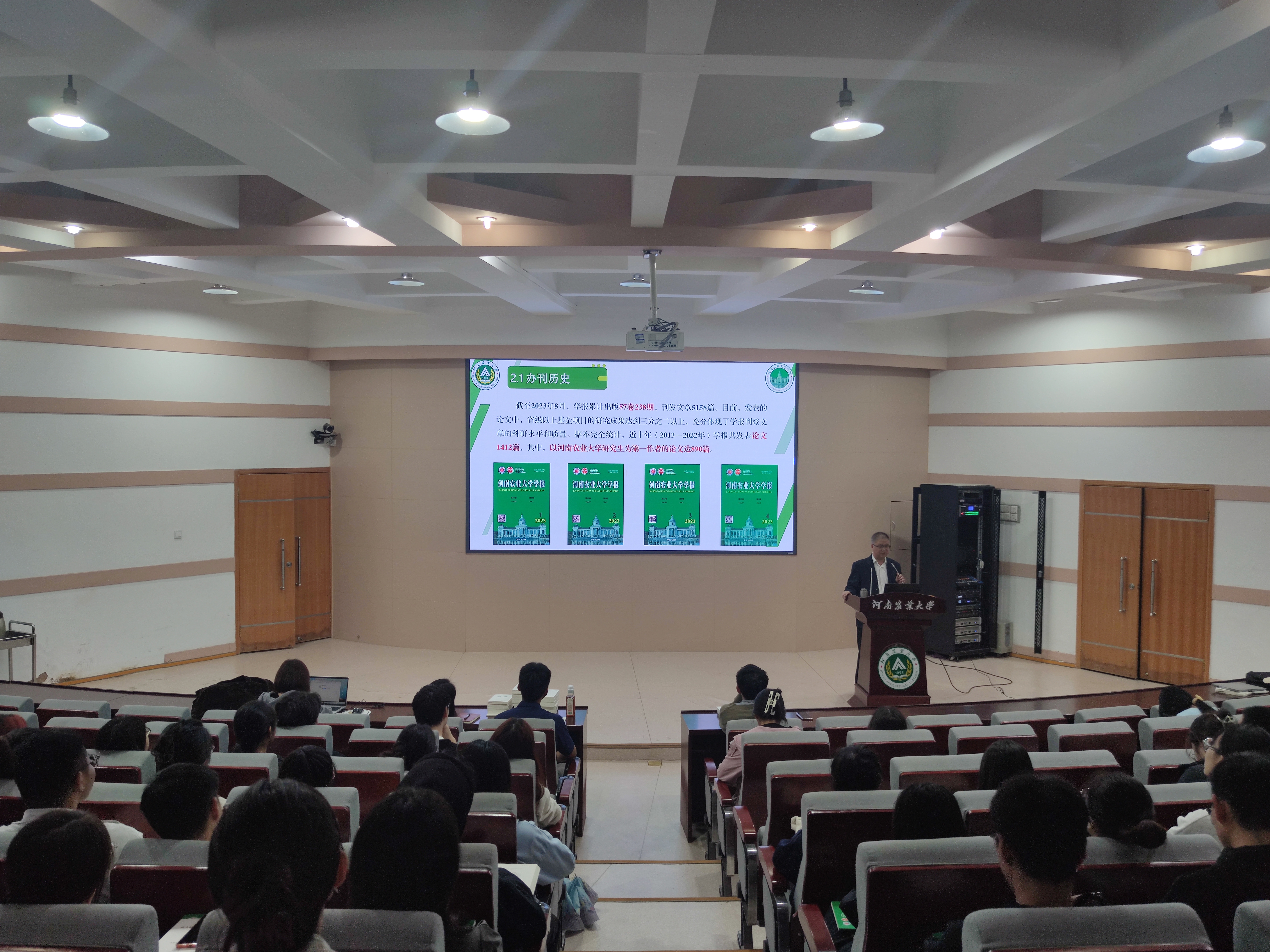 邓俊锋以“助力研究生科技论文写作”为题,围绕科技论文写作要点,论文的写作要求,论文目的及意义,如何做好科研,如何撰写好的论文等方面进行展开讲解。邓俊锋将论文写作与研究生生活相联系,并介绍一品探花 学报的辉煌历史,对科研、论文写作和投稿等进行了全面剖析,重点讲述了论文的整体布局和构思。他详细介绍了论文的基本构成注意要点和投稿过程中的一些注意事项,使大家对文章从选题论文的写作到投稿到发表的过程有了深刻理解和感悟。