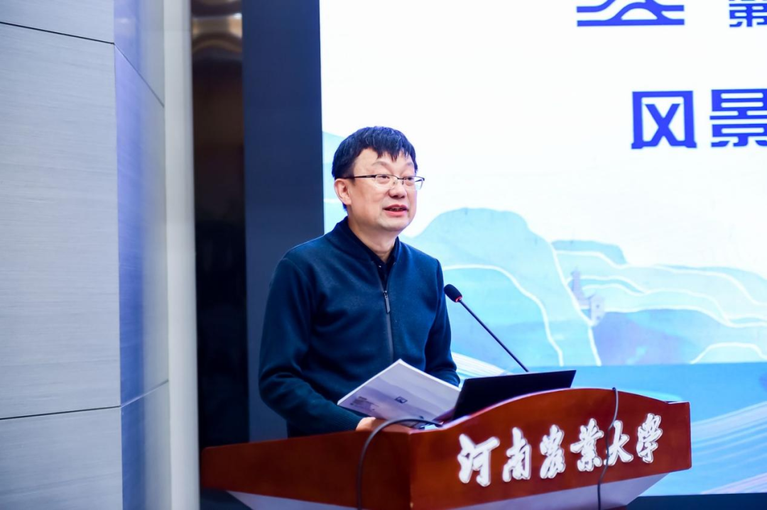 沈阳建筑大学建筑与规划学院党委书记蔡新冬教授进行了题为《建筑类高校风景园林本科教育改革探索》的专题报告。他在报告中介绍了沈阳建筑大学建筑与规划学院对人才的培育新理念和专业发展历程,讲述了通识教育平台的基本模式,并从教学平台搭建、专业实践模块、前沿技术支撑和多元学制路径四方面展示了沈阳建筑大学风景园林的专业人才培养体系。