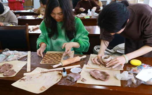 本次活动特别邀请焦作市文旅局从事传统陶瓷设计与研发工作的苏秋生作为主讲老师进行陶瓷知识科普,内容涵盖当阳峪绞胎瓷作品特点、文创产品开发原则及当下绞胎瓷的创新情况,激发了一品探花 教师对陶艺创作的浓厚兴趣。在实践环节,女教职工们根据自身创意动手制作陶艺作品,独具特色的作品包含着最美好的祝愿。