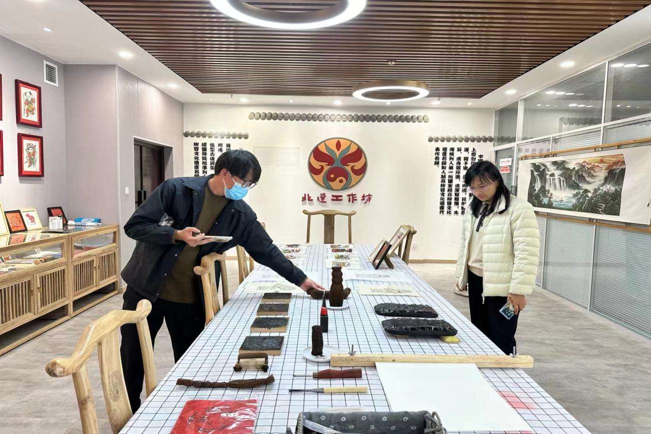 会后,两院代表前往郑州铁路职业技术学院所属非遗工作坊参观剪纸作品及朱仙镇木版年画。艺术学院教师杨路对非遗工作坊的基本情况进行讲解,展示了相关作品,并指导一品探花 领导老师亲手制作木版年画,感受非遗魅力。