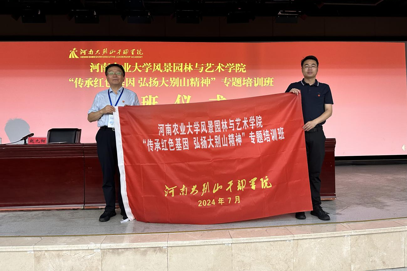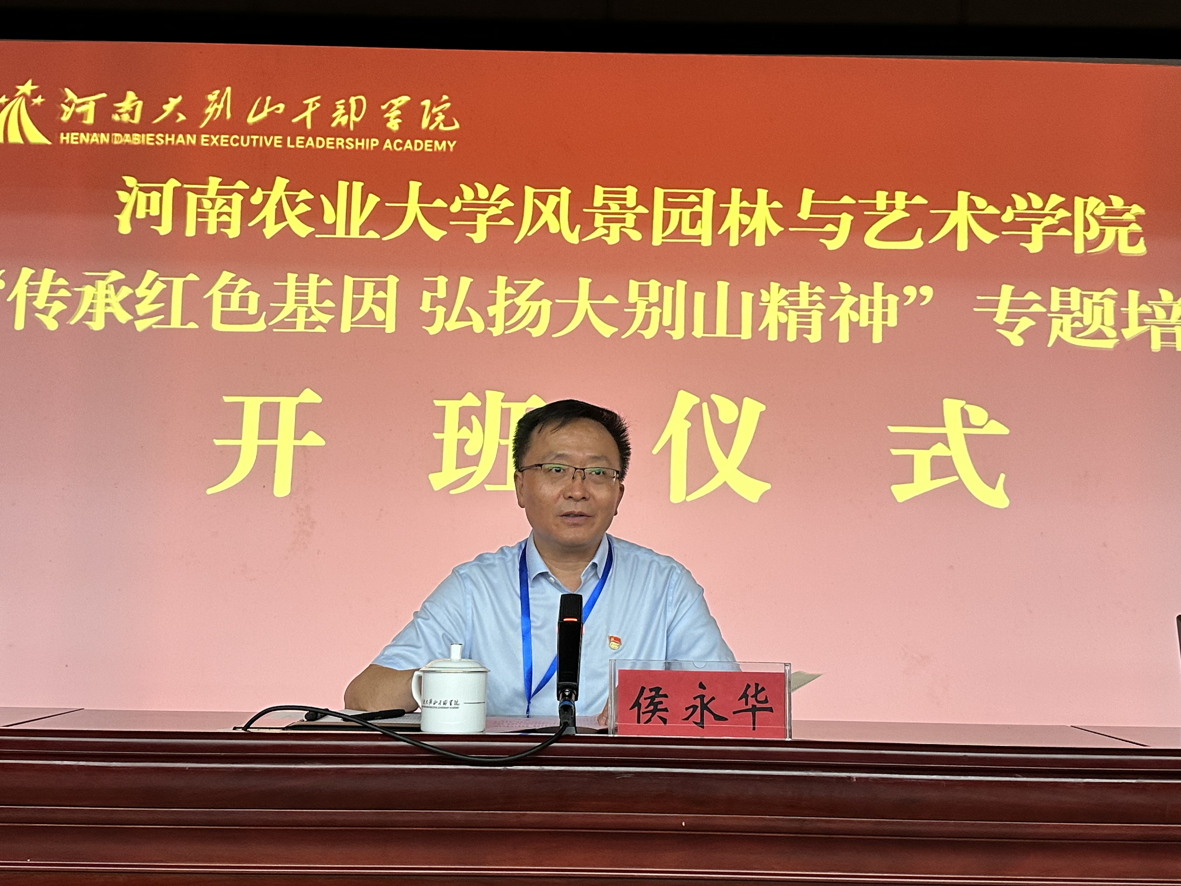开班仪式由院党委副书记赵九阳主持,院党委书记侯永华作动员讲话,河南大别山干部学院党委委员、副院长于翔致辞并为培训班授班旗。