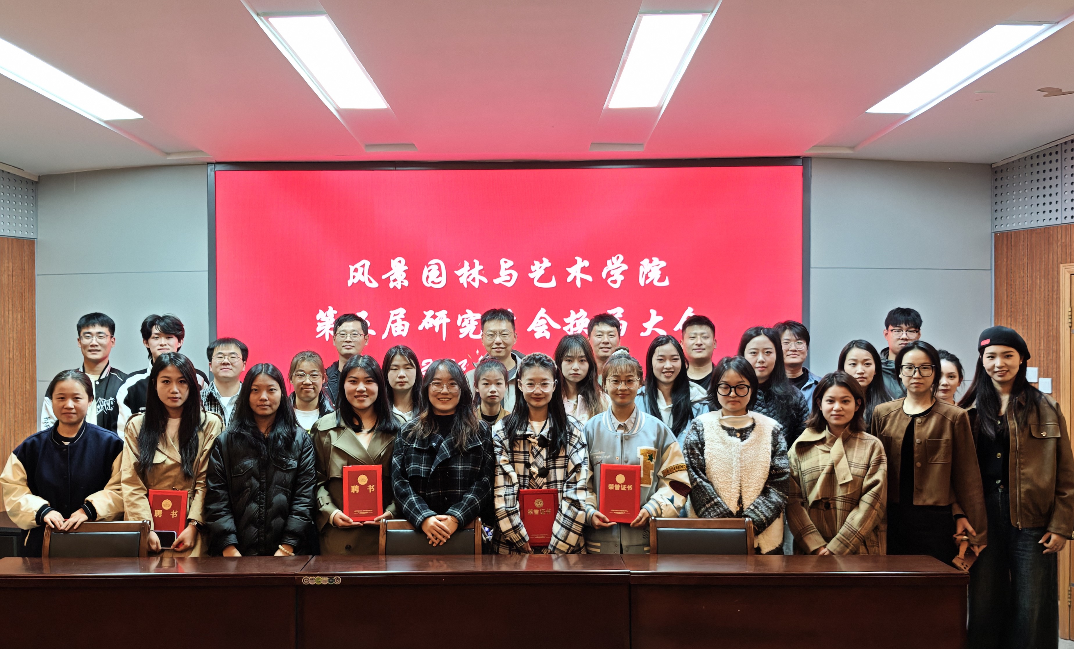 大会伊始,第四届研究生学生会主席尤啸龙对过去一年的工作进行了全面总结。他回顾了研究生会这一年在学术交流、文体活动等方面的众多成绩,对研究生学生会成员过去一年的辛勤付出表达由衷感谢,并给新一届研究生会成员传递宝贵经验。随后,院领导和老师为第四届研究生学生会主席团成员颁发荣誉证书,以表彰他们为研究生学生会做出的贡献。紧接着,梁高铭公布了新一届研究生学生会各部门成员名单,院领导和老师为主席团成员颁发聘书。新任学生会主席张怡雪在发言中表示,将带领研究生学生会团队传承优良传统,不断提升学生服务水平,为学院的发展贡献新的力量。
