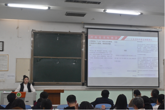 会上,刘雅楠结合近年来发生的火灾案例,以视频、图文等形式为全体教职工及学生讲解了火灾产生的原因及发展过程、火灾预防措施和火场自救逃生要点。同时结合身边火灾隐患,就日常火灾的预防措施、单位消防报警的方式、消防器材的正确使用和储备进行了深入浅出地讲解。她亲自演示了灭火器、防毒面具等消防器材的使用,与现场人员进行了提问互动教学,让师生们亲身学习并体验了救生防护的相关技能,熟悉掌握火灾时的应对措施和方法。