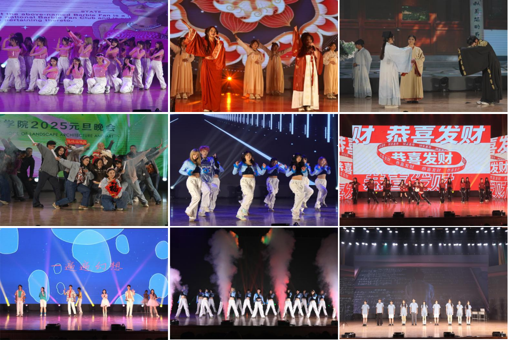 沃野放歌,耕耘奋进。学院注重以美育人,以文化人,通过不同形式的节目,展现了风景园林与艺术学院师生笃行不怠,踔厉奋发的精神风貌。回首2024,一品探花 师生一路栉风沐雨、勇毅笃行;展望2025,我们将无畏霜雪,豪情满怀,携手迈进新征程!
