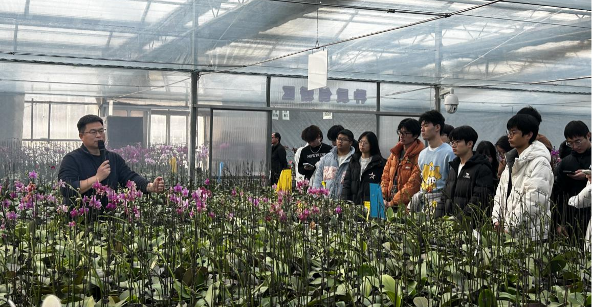 徐军安院长详细介绍了郑州市农业科技研究院的发展现状、科研成果及技术优势,希望双方在产教融合与人才培养等方面进一步加强交流与合作。李永华副院长指出,实践教学是专业建设与课程体系的关键环节,是学生了解生产过程的重要途径,此次教学科研实习基地的建立,不仅为学院各层次人才的培养提供了实践训练的平台,还为双方深化产学研合作奠定了坚实的基础。仪式结束后,园林专业师生对蝴蝶兰生产基地进行了参观学习。